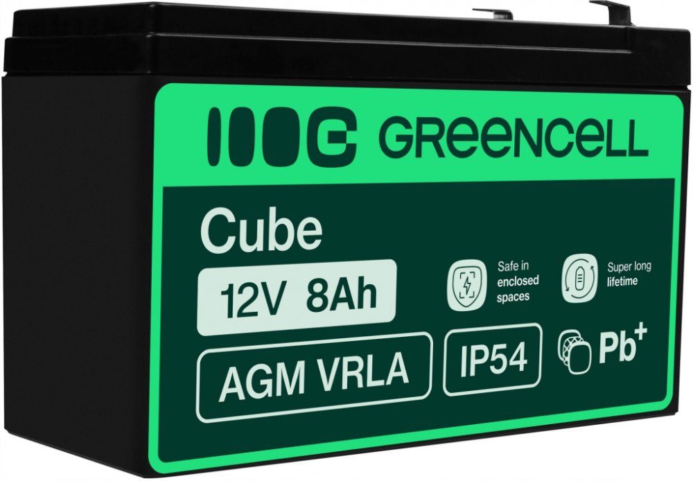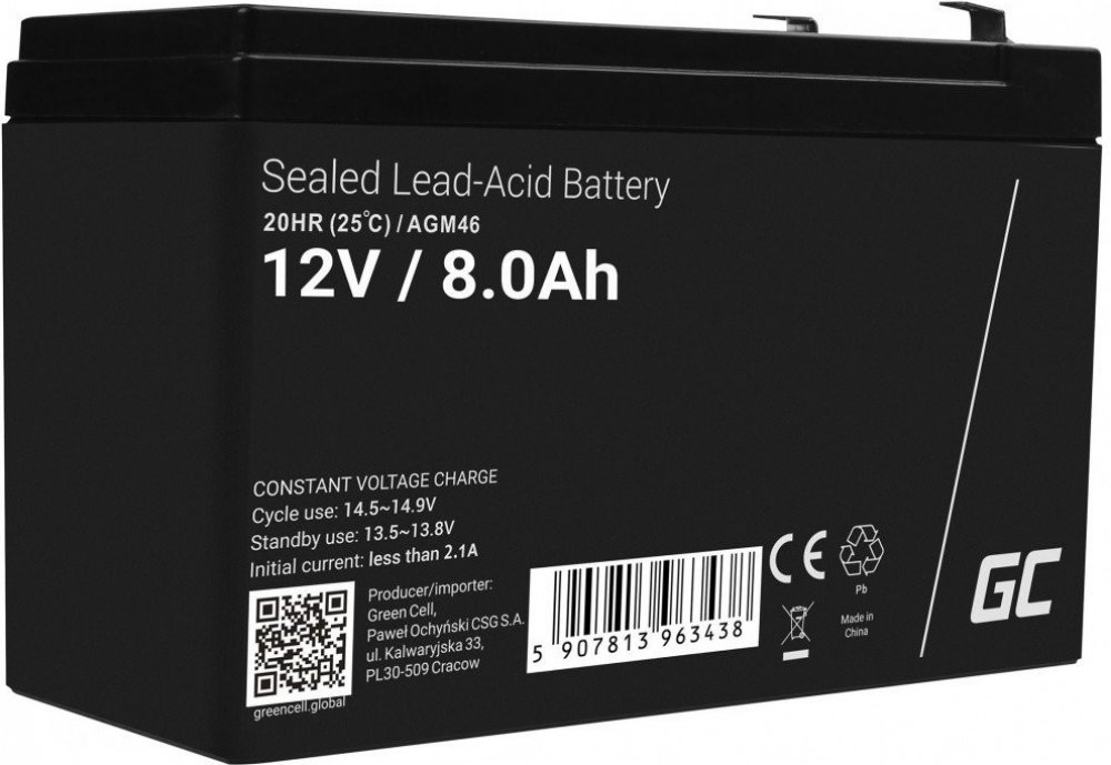 Green Cell AGM VRLA 12V 8Ah maintenance-free battery for the alarm system, cash register, toys AGM46