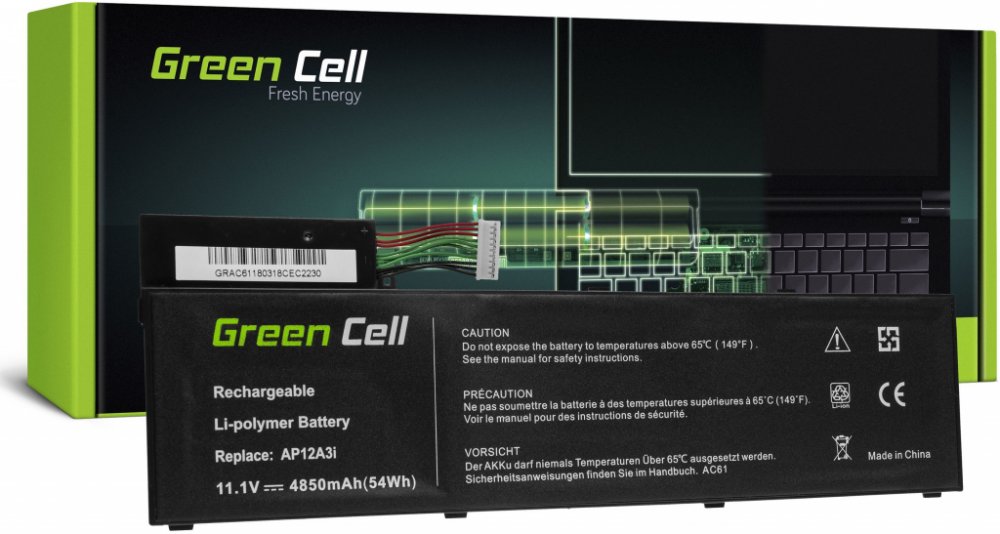 Popis:Kapacita: 4850 mAhNapětí: 11.1VPočet článků: 4Typ článků: Li-PolyOchrana proti přepětí: AnoBarva: ČernáOchrana proti hlubokému vybití: AnoOchrana proti přebití: Ano Napětí 10,8V a 11,1V (14,4V a 14,8V) lze považovat za shodné.Kompatibilní s: 3ICP7/65/88 3ICP7/67/90 AP12A3i AP12A4i BT.00304.011 KT.00303.002 Acer Aspire M3-581PTG Acer Aspire M3-581T Acer Aspire M3-581TG Acer Aspire M3-580 Acer Aspire M3-581G Acer Aspire M3-581PT Acer Aspire M5-481 Acer Aspire M5-481TG Acer Aspire M5-581G Acer Aspire M5-582PT Acer Iconia Tab Acer Aspire M3 Acer Aspire M3-481 Acer Aspire M3-481G Acer Aspire M5 Acer Aspire M5-481G Acer Aspire M5-481PT Acer Aspire M5-481PTG Acer Aspire M5-481T Acer Aspire M5-581T Acer Aspire M5-581TG Acer Aspire Timeline Acer Aspire TimelineU Acer Iconia W700 Acer Iconia W700-33224G06AS Acer Iconia W700-6465 Acer Iconia W700-6495 Acer Iconia W700-6691 Acer Iconia W700P Acer Travel Mate Acer Travel Mate P645-S Acer Travel Mate P645-SG Acer Travel Mate P645-VG Acer Travel Mate P648-G2 Acer Travel Mate P648-M Acer Travel Mate P658-M Acer Aspire TimelineU M3-581TG Acer Aspire TimelineU M5-481PT Acer Aspire TimelineU M5-481TG Acer Travel Mate P658-G2 //