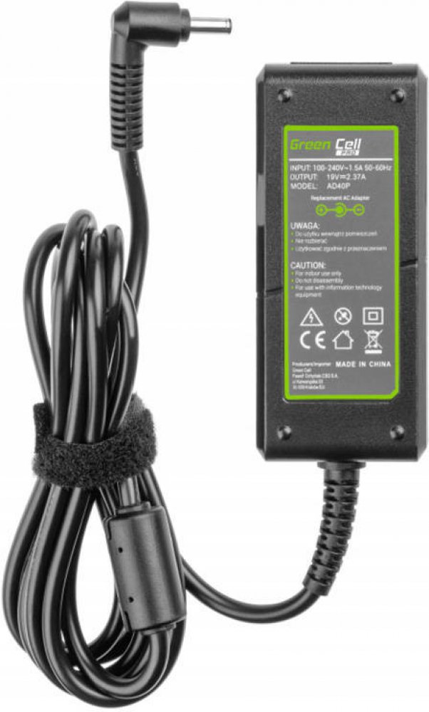 Jak se ujistit, že napájecí adaptér bude vhodný pro váš notebook? Tento model napájecího adaptéru Green Cell PRO je určen pro notebooky Asus R540 X200C X200M X201E X202E Vivobook F201E S200E řady ZenBook UX31A UX32V, ale v závislosti na konkrétní konfiguraci počítače mohl výrobce použít nabíječku s mírně odlišným typem napájení nebo konektoru. Chcete-li se ujistit, že napájení bude 100% vyhovující, zkontrolujte příslušné parametry.
