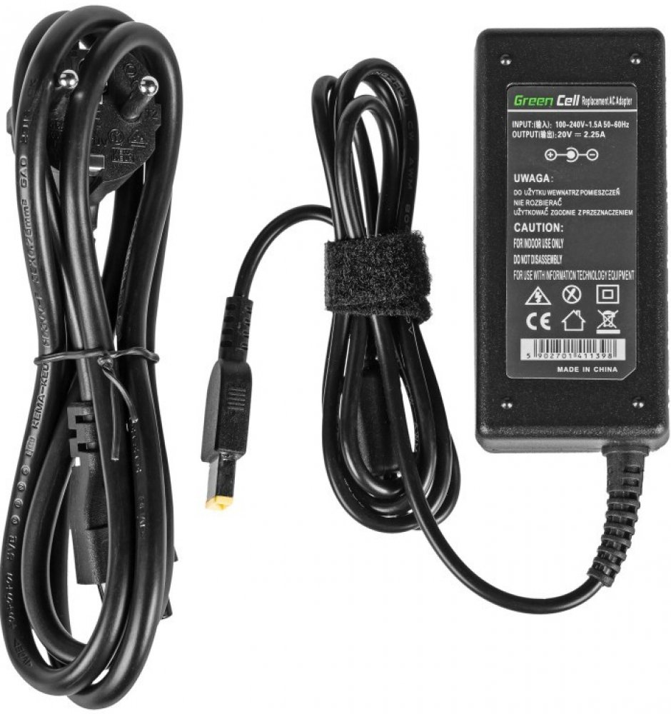 Jak se ujistit, že napájecí adaptér bude vhodný pro váš notebook? Tento model napájecího adaptéru Green Cell PRO je určen pro notebooky Lenovo řady G40-30 G50-30 V110-15IAP V130-15IGM Yoga 300-11IBR ThinkPad X240 T440, ale v závislosti na konkrétní konfiguraci vašeho počítače mohl výrobce použít nabíječku s mírně odlišným výkonem nebo typem konektoru. Chcete-li se ujistit, že váš napájecí zdroj bude 100% vyhovovat, zkontrolujte příslušné parametry.