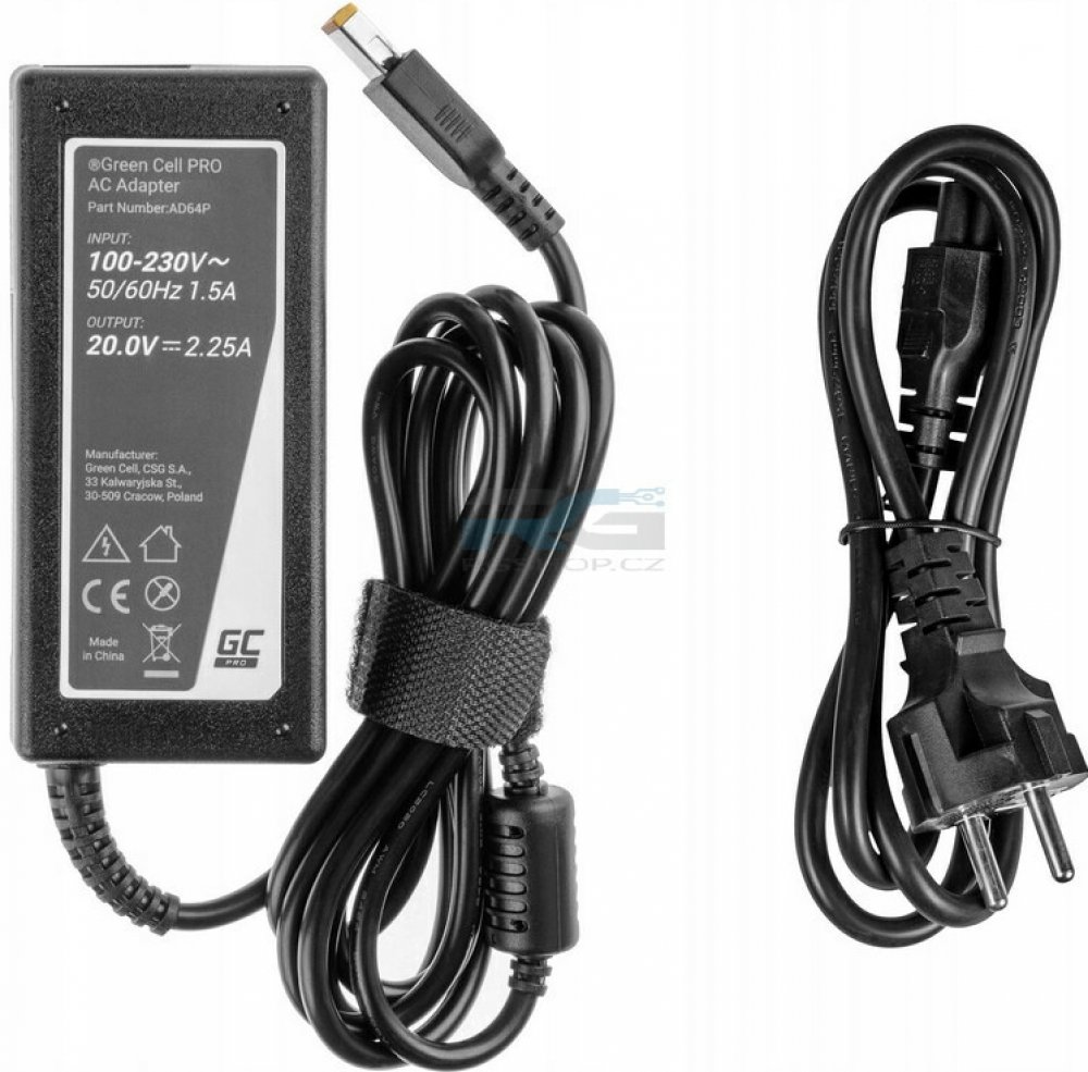 Napájecí zdroj Green Cell PRO 20V 2,25A 45W pro Lenovo G40-30 G50-30 V110-15IAP V130-15IGM Yoga 300-11IBR ThinkPad X240 T440