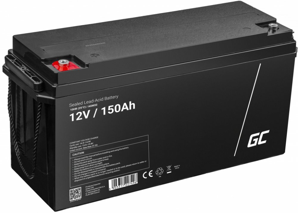 Bezúdržbová baterie Green Cell AGM32 12V 150Ah VRLABaterie AGM od posločnosti Green Cell mají velmi široké možnosti použití. Mohou se použít na cyklickou i vyrovnávací operaci.