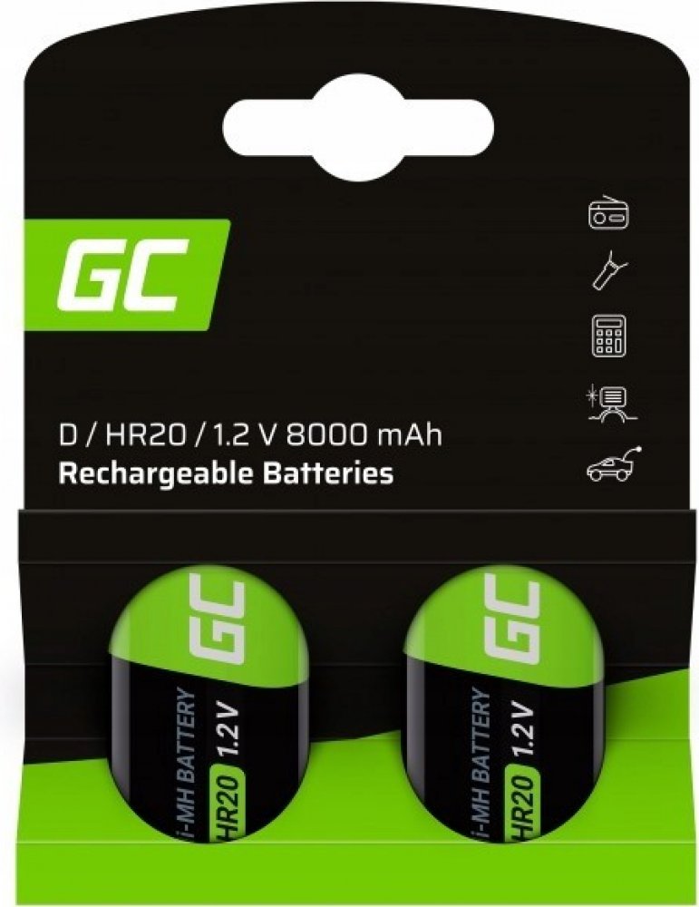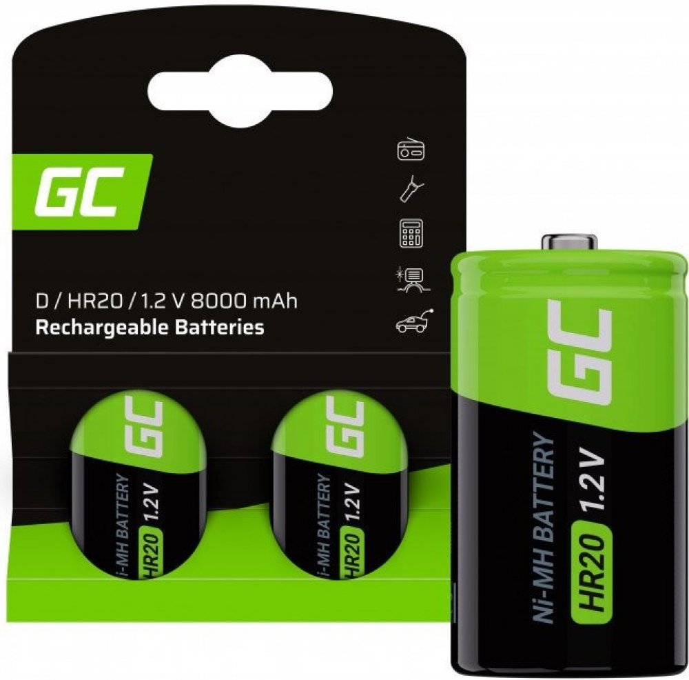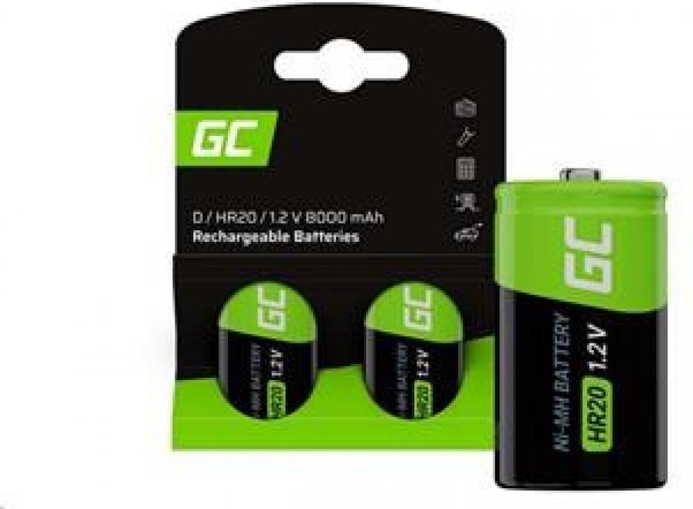 Dobíjecí baterie - velký monočlánek Green Cell GR15 2x D R20 / HR20 Ni-MH 8000 mAh vhodné do zařízení jako svítidla, rádia, kalkulačky, GPS, hračky apod.