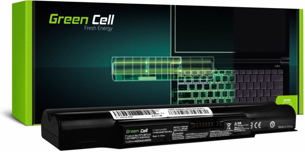 Description: Capacity: 4400 mAh Voltage: 10.8V (11.1V) Number of cells: 6 Cells technology: Li-Ion Warranty: 12 months Cells manufacturer: Green Cell Colour: Black Overdischarge protection: Yes Overcharge protection: Yes The possibility of return: Up to 30 days Product code: FS29 Manufacturer: Green Cell Work time: from 1.5 up to 4h Series: Standard Compatibility list: Compatible with following battery models : FMVNBP213,FPCBP331 Compatible with following devices : Fujitsu LifeBook A512,Fujitsu LifeBook AH502,Fujitsu LifeBook A532,Fujitsu LifeBook AH532,Fujitsu Lifebook AH512