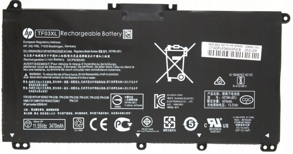 Baterie HP TF03XL HSTNN-LB7X 920046-421 pro HP 14-bp000 14-bp100 14T-bp000 Pavilion 14-bf000 Pavilion 14-bf100 Pavilion 14-bk000 Pavilion 14-bk100 Pavilion 14-cd0000 x360 Pavilion 14-cd0100 x360 Pavilion 14-cd0200 x360 Pavilion 15-cc000 Pavilion 15-cc100 Pavilion 15-cc500