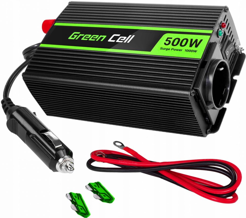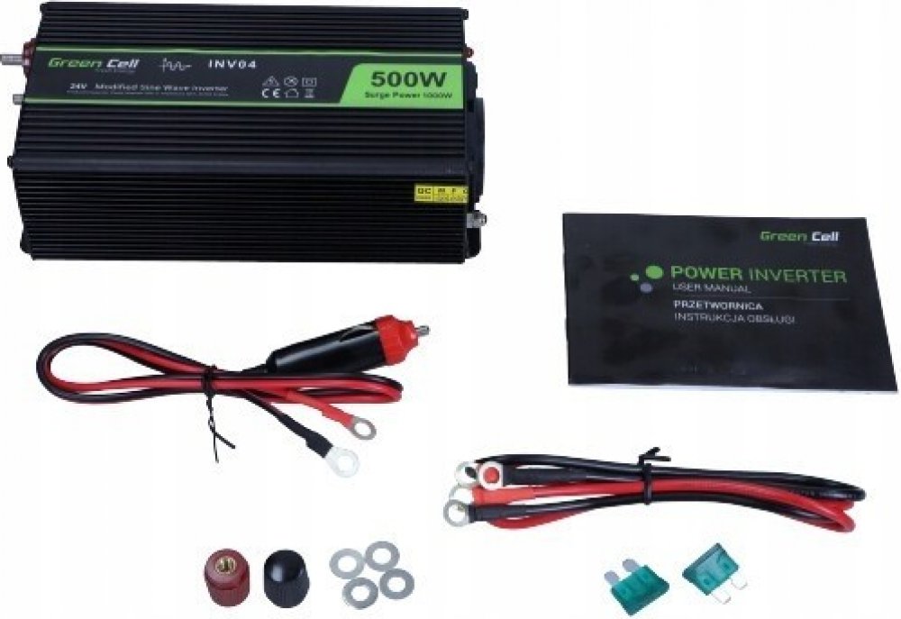 Automobilový měnič / invertor Green Cell INV04DE Voltage Car Inverter 24V to 230V, 500W / 1000W je zařízení, které mění stejnosměrné napětí z automobilového akumulátoru nebo automobilového svazu na střídavý proud ~ 230V. Přesně stejný signál je v každé elektrické zástrčce (typ F) v Evropě. 24V se využívá zejména v nákladních autech. Bude perfektní na místech bez přímého přístupu k síťovým zásuvkám...