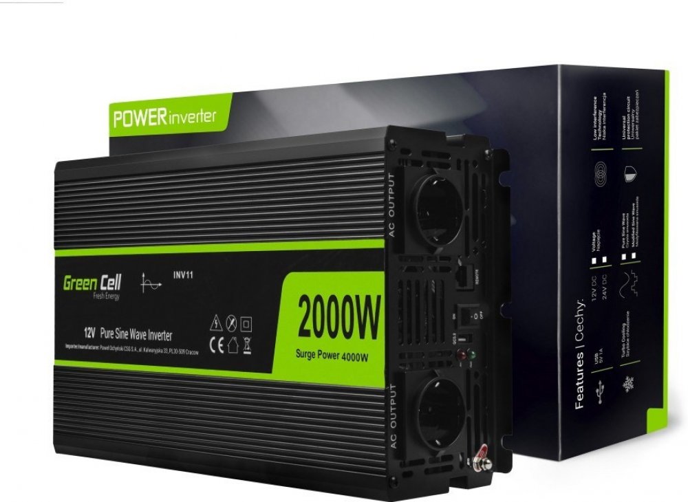 Green Cell 2000 W 12V 230V čisté sinusoidy 4000 W