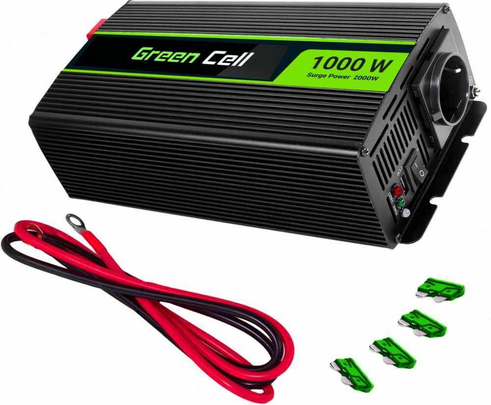Měnič Green Cell do auta je zařízení, které mění napětí 24 V DC z baterie na 230 V, takže můžeme na cestách používat jakýkoli domácí spotřebič. Tento model je určen pro instalace s napětím . Zařízení poskytuje čistý sinusový proud, který nám umožňuje používat všechny typy spotřebičů. Přenosná zásuvka - měnič do auta je zařízení, které vám umožní používat vaše elektrické přístroje kdekoli, i mimo dosah zdroje elektrické energie Univerzálnost - měnič Green Cell má nejen síťové zásuvky, do kterých můžete zapojit svá elektrická zařízení, ale také port USB pro nabíjení menších přístrojů, jako je smartphone nebo tablet Plná bezpečnost - nemusíte se obávat přepětí, se zařízením Green Cell je vaše zařízení vždy v bezpečí. Střídač má řadu bezpečnostních prvků a certifikací, takže pracuje bez rušení Modifikovaná sinusovka - zahrnuje jednodušší konstrukci střídače, která zajišťuje menší poruchovost. Střídač s modifikovanou sinusovkou umožňuje stabilní provoz zařízení, jako jsou napájecí zdroje, počítače, LED lampy