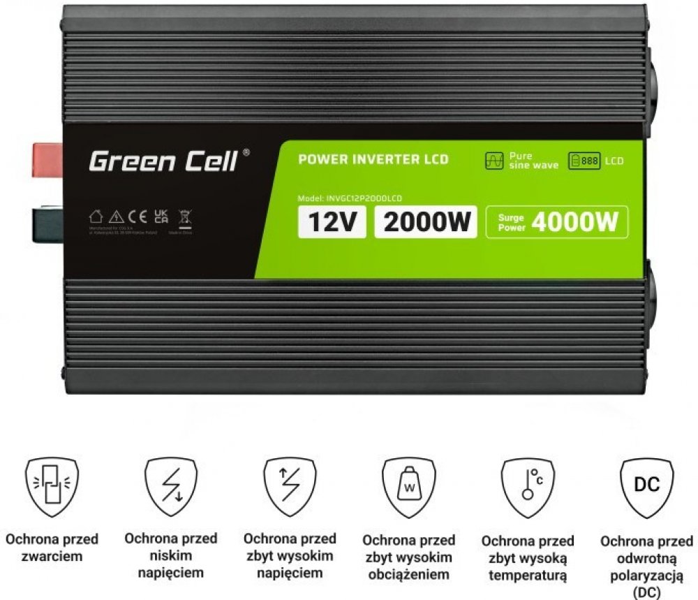 ✅ LCD displej ✅ Čistá sinusoida ✅ USB konektor Quick Charge 3.0✅ 12V ✅ 2000W/4000W ✅ Výkonné chlazení ✅ Polský výrobce⭐ Měnič Napětí automobilová Green Cell PowerInverter LCD 12V 2000W/4000W
