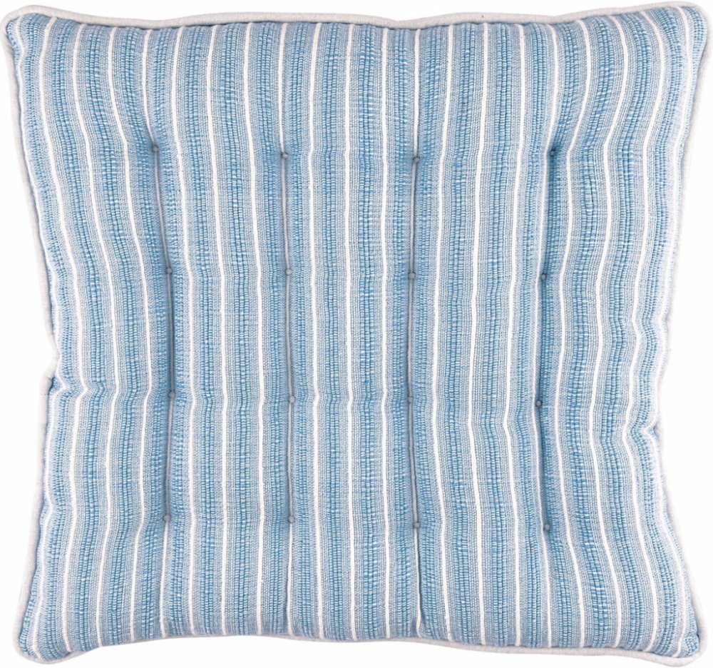 Prošívaný sedák z kolekce Alessia Pale Blue má pruhovaný dekor ve světle modrém provedení a po obvodu je bíle lemován. Jeho bohatá výplň zajišťuje maximální pohodlí. délka 40 cm / šířka 40 cm / výška 4 cm Vyrobeno z certifikované bavlny (100%), výplň polyester (100%).