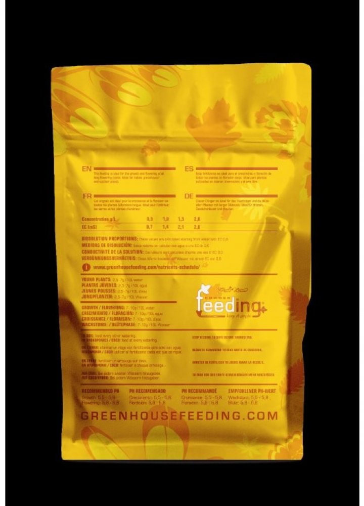 Vyvážený poměr NPK poskytuje dostatek dusíku po celou dobu kvetení a vysoké množství fosforu umožňuje rostlinám vytvořit silný a zdravý kořenový systém, zejména pro rostliny s dobou kvetení delší než 10 týdnů.