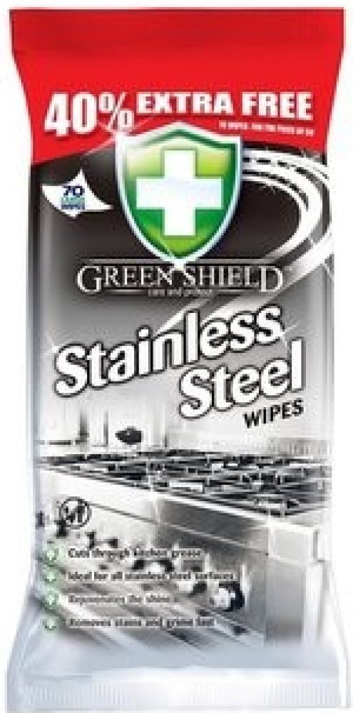 \nGreen Shield - čistící ubrousky na nerezové a kovové plochy - 70Ks velmi praktické balení vlhčených ubrousků na nerezové a kovové plochy. Ubrousky jsou v praktickém uzavíratelném balení a dokonale č