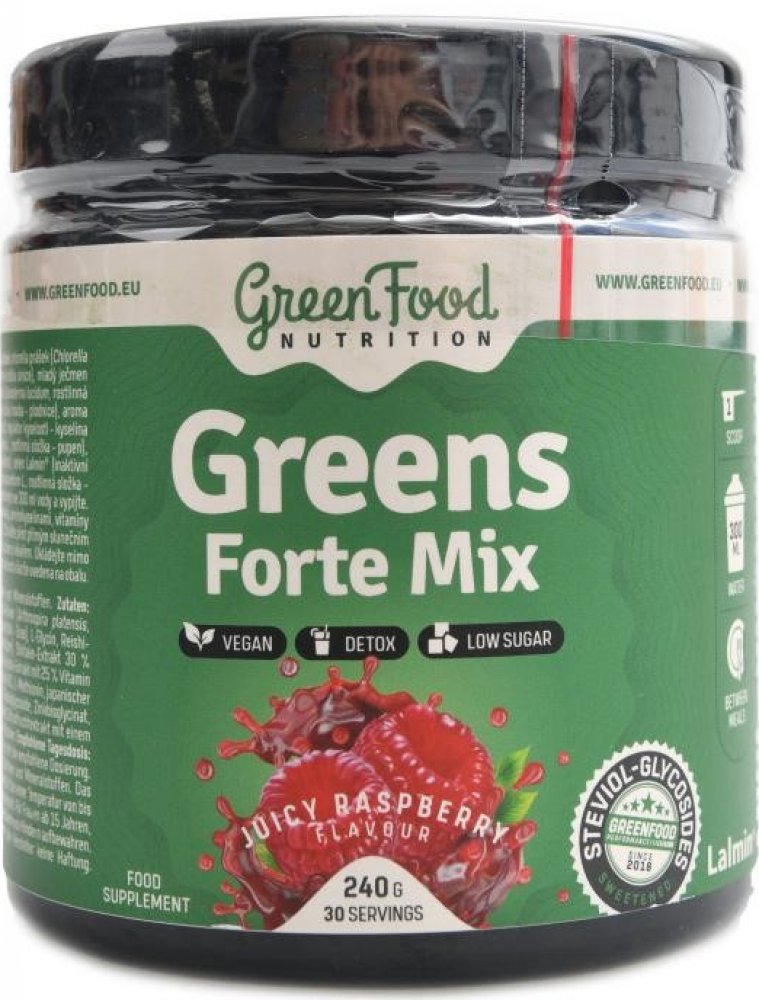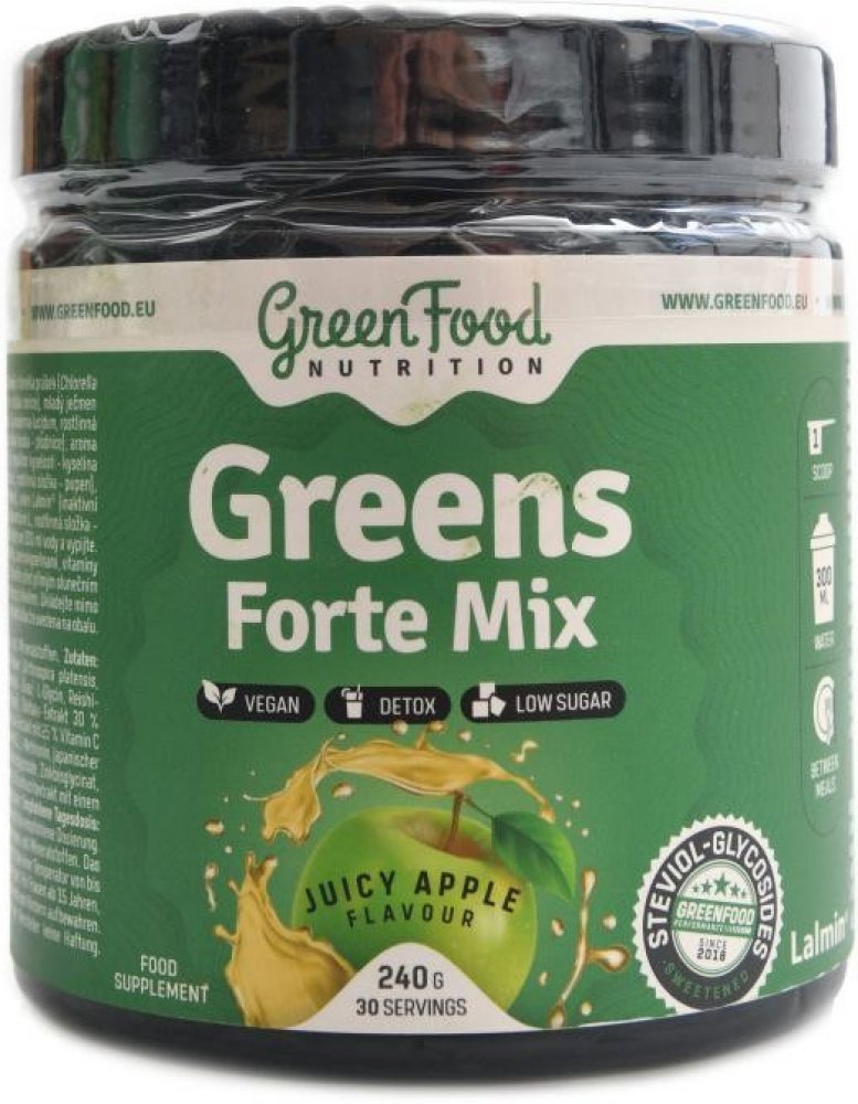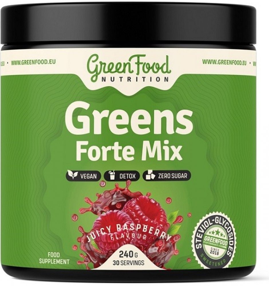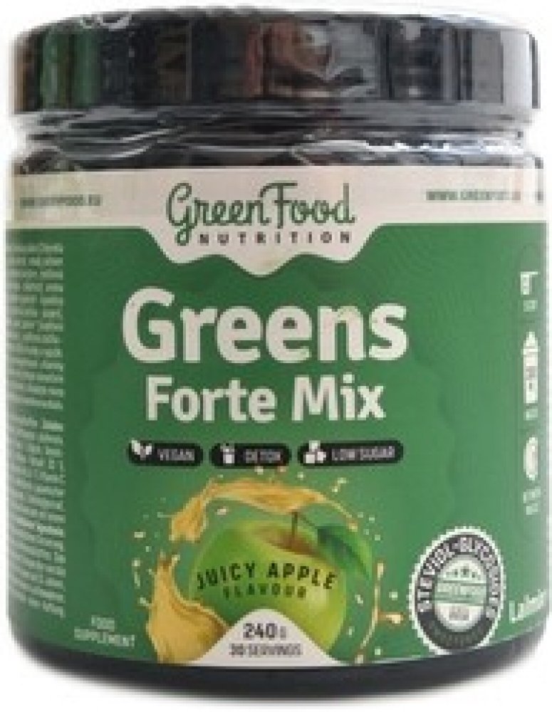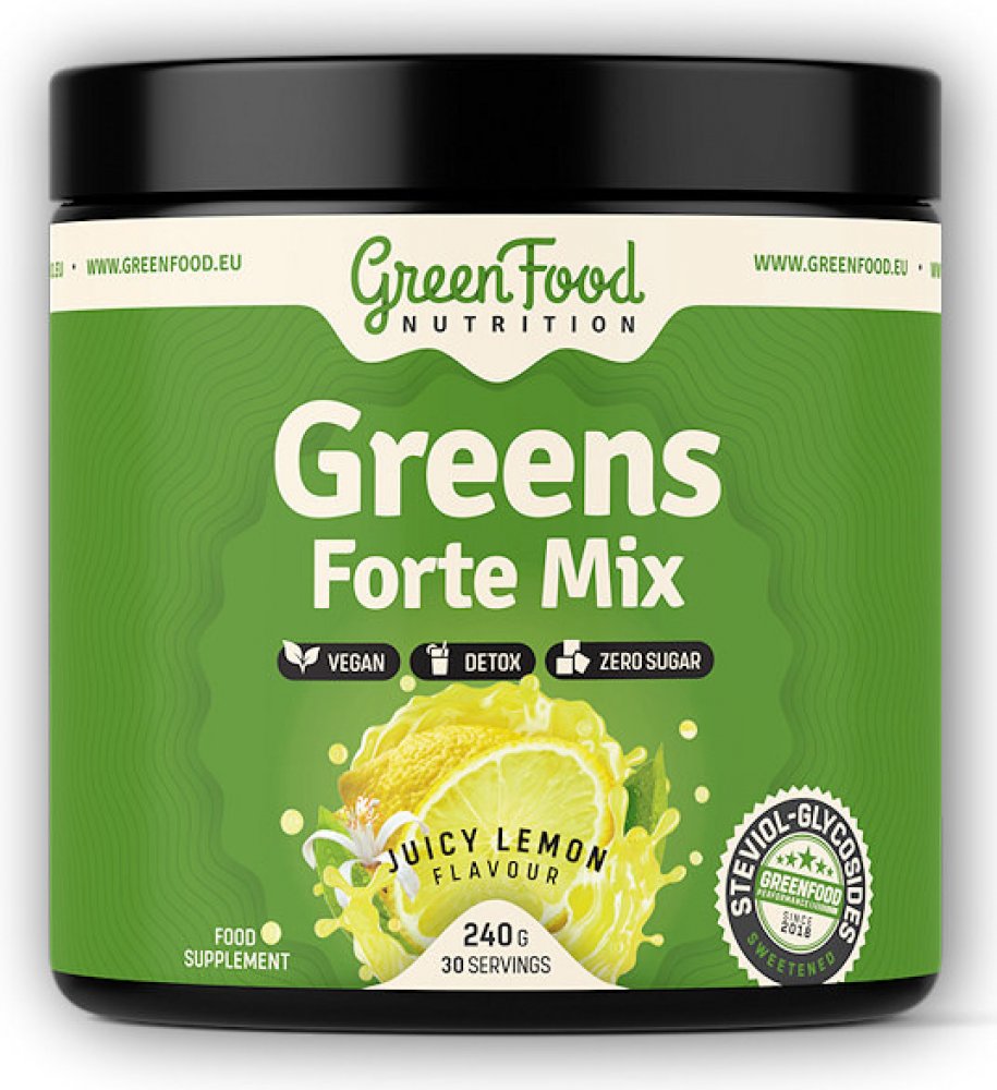 Greens Forte Mix je směs zelených potravin, adaptogenů z rostlinných zdrojů v podobě asijských hub používaných již po staletí v Číně a Japonsku. Obsahuje důležité vitamíny a minerální látky z přírodních zdrojů podílející se na antioxidačních procesech v lidském těle, aminokyseliny fungující jako startér mnoha procesů v našem organismu a neposlední řadě i vysokou dávku citrusových bioflavonoidů.
