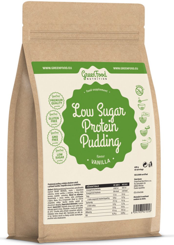 GreenFood Low Sugar Proteinový puding vanilka 400 g