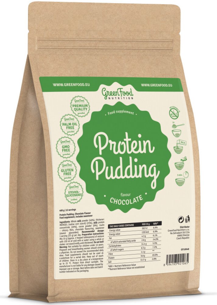 Návod k přípravě: 1x denně dávku 33 g (cca jednu vrchovatou odměrku) protřepejte v šejkru ve 150-200ml chladného mléka (v závislosti na požadované hustotě pudingu). Nechte chvilku odstát do zhoustnutí. Nevařte. Nepřekračujte doporučené dávkování.