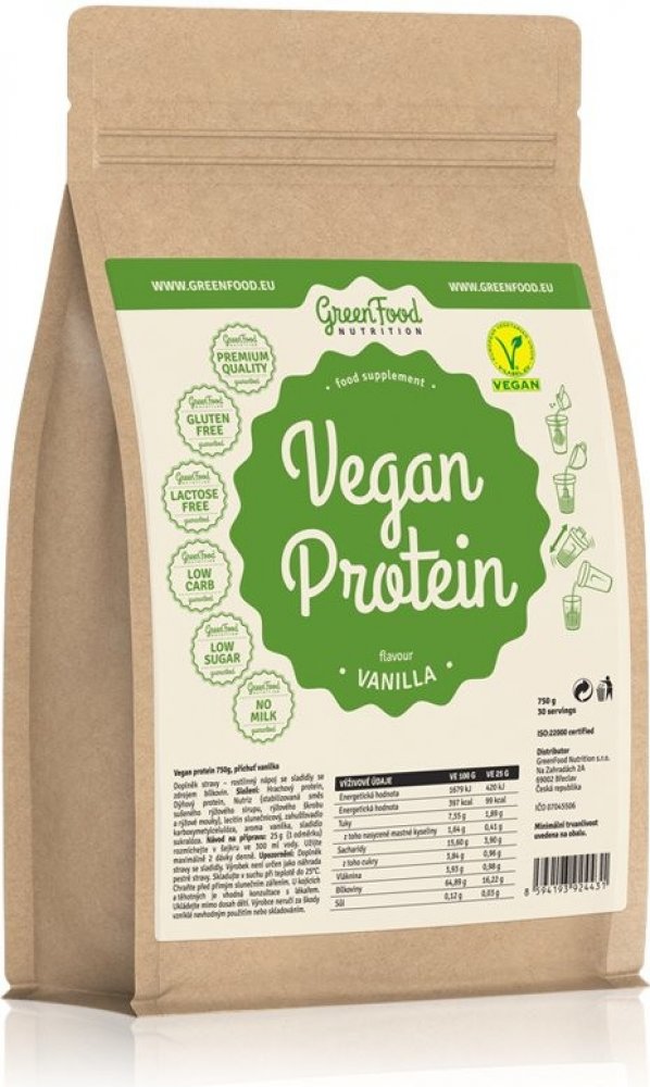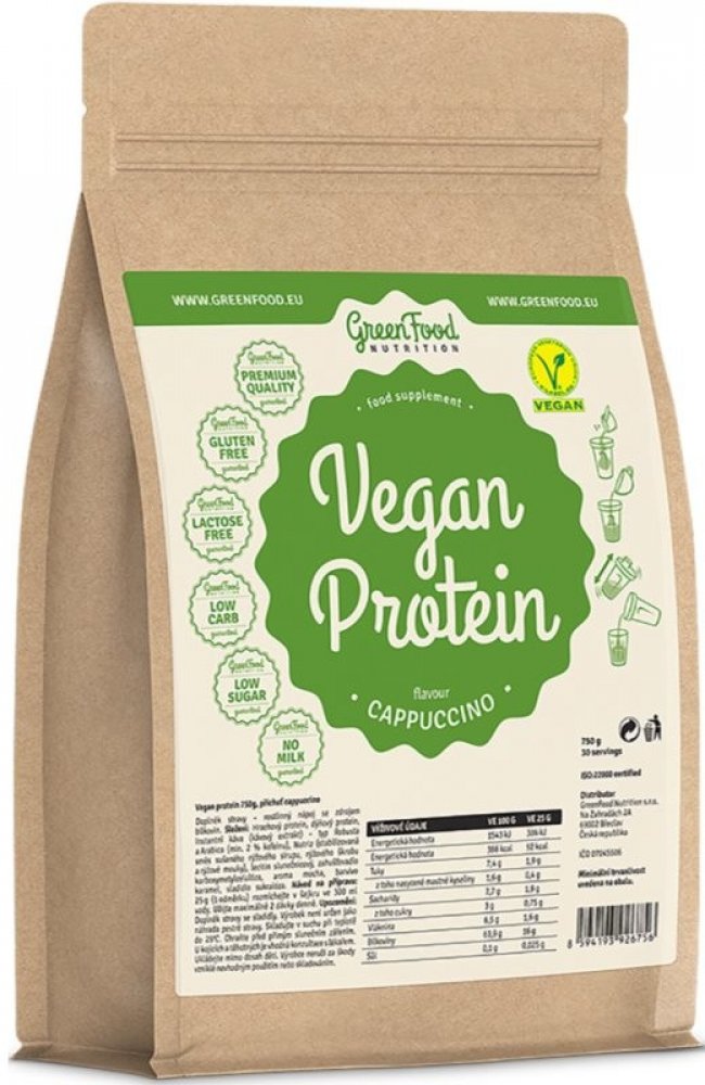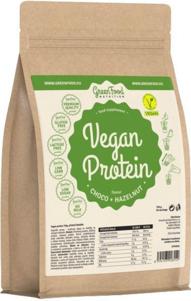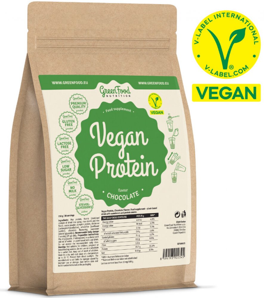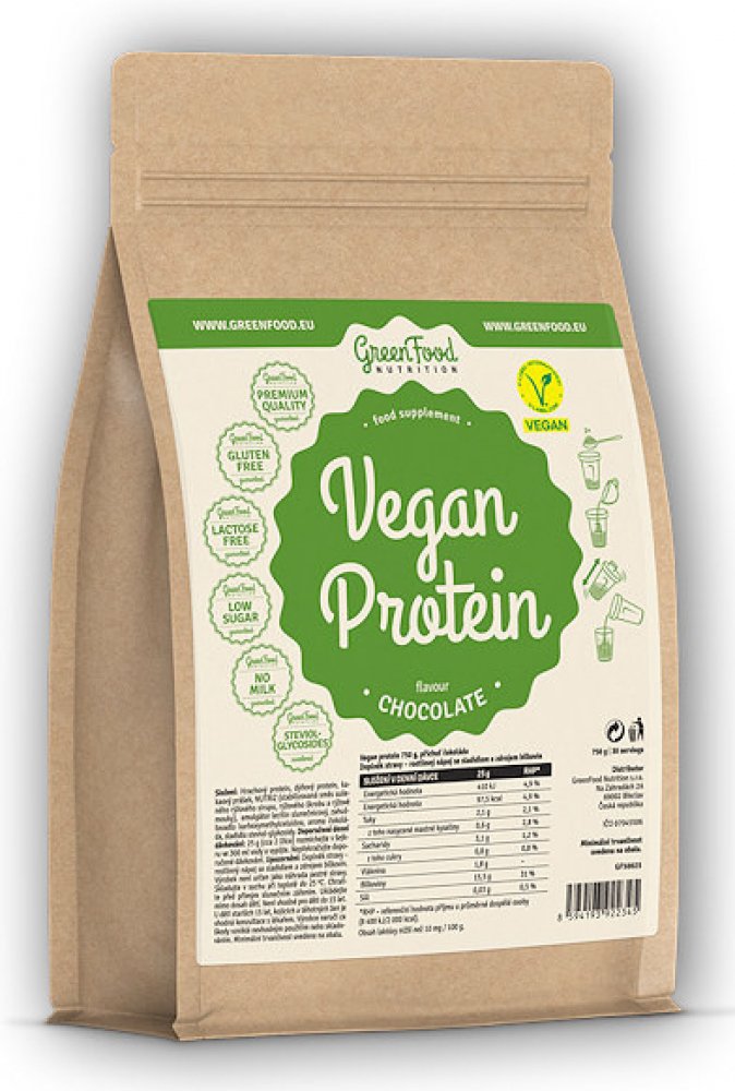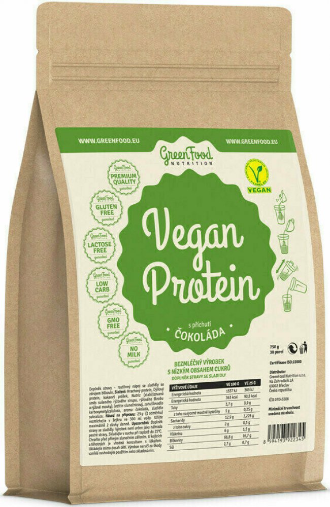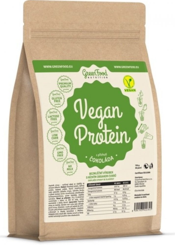 GreenFood Nutrition 750 g veganské práškové 15.5 g 25.0 g 30 ks 97.0 kcal steviol-glykosidy, lecitin, karboxymethylcelulóza hrachový protein, nutriz, kakaový prášek 10.0 g/100 ml