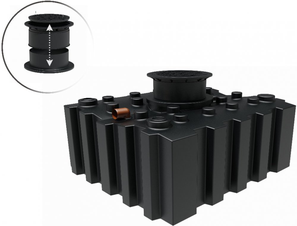 ZDARMA: teleskopický nástavec včetně poklopu (380 - 580 mm), za poplatek lze vyměnit za vyšší teleskopický nástavec- dle Vaši potřeby, vyvrtání vtoku s těsněním (110, 125 nebo 150) a přepadu.