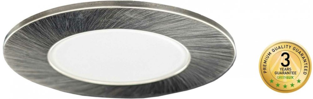 Greenlux stříbrná plast pro velmi malé místnosti bodová stropní zapuštěná 3000 K 5 W IP65 G vhodné pro vlhké prostory 230 V 330 lm 5 cm 0.75 kg 8.3 cm