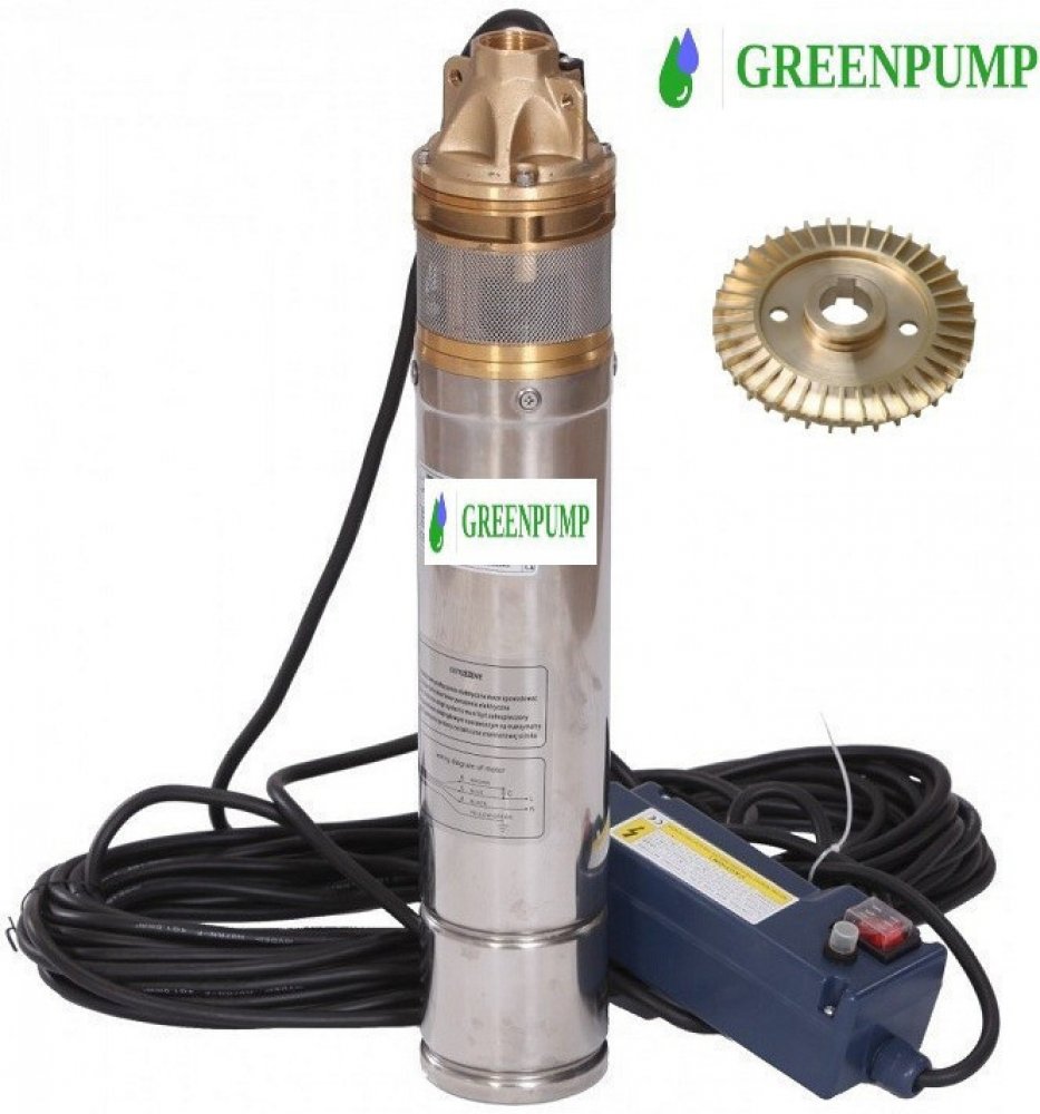 Ponorné čerpadlo GREENPUMP 4SKM 100 - 15 m kabel s oběžným kolem z mosazi vhodné pro čerpání vody ze studní, vrtů a šachet pro domy, chaty, závlahy a zásobování vodouPonorné čerpadlo GREENPUMP 4SKM 100 - 15 m kabel s oběžným kolem z mosazi vhodné pro čerpání vody ze studní, vrtů a šachet pro domy, chaty, závlahy a zásobování vodou.Konstrukce čerpadla:mosazné oběžné kolo pro vysokou odolnost vůči o...