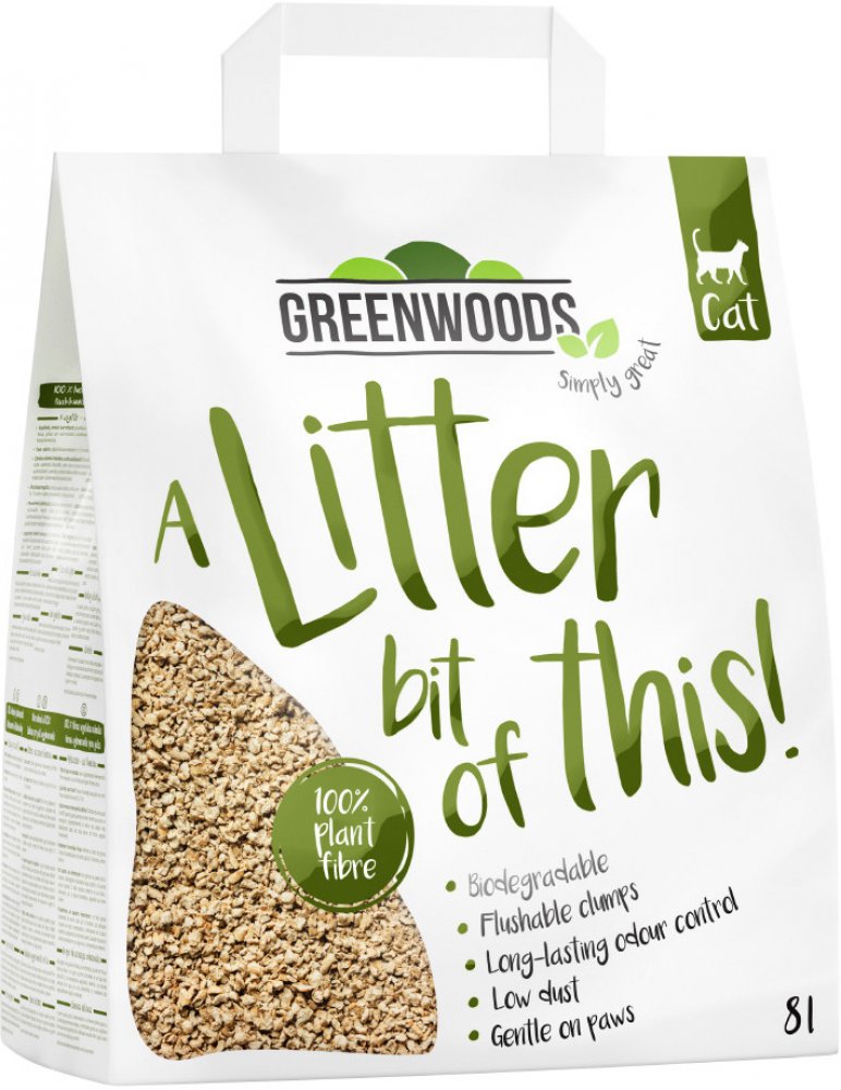 Ve firmě Greenwoods je naší nejvyšší prioritou pohoda Vašeho domácího mazlíčka. Toto biologicky odbouratelné, zcela přírodní, hrudkující stelivo pro kočky je vyrobeno z čistých přírodních rostlinných vláken ze 100 % obnovitelných zdrojů. Je kompostovatelné, šetrné k životnímu prostředí a zaručuje úžasnou 700 % absorpci vlhkosti ve srovnání se svou původní hmotností. Toto stelivo má svěží, dřevitou vůni, vyznačuje se minimální prašností a je šetrné k tlapkám vaší kočky. Život je mnohem příjemnější s přírodním hrudkujícím stelivem značky Greenwoods. Greenwoods stelivo pro kočky na dřevěné bázi má mnoho výhod: 100% přírodní: Greenwoods hrudkující stelivo na dřevěné bázi je vyrobeno ze 100% čistých, přírodních a obnovitelných zdrojů rostlinných vláken a je zcela bez chemických přísad. Proto je je velmi šetrné k životnímu prostředí. Biologicky odbouratelné: Stelivo je kompostovatelné a proto může být zlikvidováno lehce na kompostu. Vezměte prosím na vědomí, že likvidace musí proběhnout v souladu s místními předpisy o komunálním odpadu. Jednotlivé hrudky lze zlikvidovat na záchodě. S přírodní vůní dřeva: Dřevěná vlákna poskytují svěží, příjemnou, dřevitou vůni, přírodní aroma neobsahuje žádné umělé přísady a látky určené k aromatizaci. Velmi efektivní: Stelivo velmi rychle a absorbuje kapaliny o hmotnosti vyšší než 7 krát hmotnost suchého produktu, vrh je efektivní a ekonomické použití. Minimální prašnost: Stelivo bez prachu je důležité především pro starší kočky a zvířata trpící alergiemi. Lehkost: Stelivo je velmi lehké, takže je snadné jej používat každý den a během přepravy se nenaskytnou žádné problémy. Účinně pohlcuje pachy a bakterie Může být zlikvidováno na záchodě: Jednotlivé hrudky lze snadno likvidovat v toaletě, protože podestýlka je vyrobena z přírodních vláken, jako je toaletní papír. Dodržujte místní předpisy týkající se nakládání s odpady. Jemný pro vašeho mazlíčka. Pokyny k použití: V záchodě je možné splachovat pouze jednotlivé hrudky! Nasypte malé množství odpadu do toalety a počkejte, až nasákne vodou. Poté jej dobře spláchněte velkým množstvím vody. Tento postup opakujte několikrát. Je jednodušší, když se hrudky před vhozením do vody rozdrtí. V žádném případně nevyhazujte do toalety velké množství hrudek, protože je potřeba čas k tomu, aby voda byla schopna hrudky rozpustit. Takto celý proces probíhá rychle a hygienicky. Toaleta není vhodným místem pro vyprazdňování bedničky. Zbývající stelivo musí být likvidováno buď kompostováním nebo v souladu s místními předpisy o komunálním odpadu. Pro dosažení co nejlepších výsledků odstraňujte hrudky několikrát denně a přidávejte podle potřeby nové stelivo.