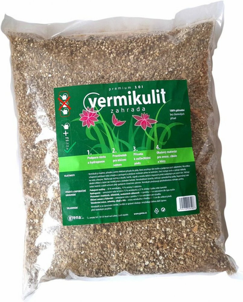 Vermiculite je přídavek do substrátu, který absorbuje živiny, zabraňuje jejich vymývání a pomáhá následnému uvolňování do rostlin. Vermikulit je plnohodnotná náhrada perlitu, písku a rašeliny současně, zlepšuje provzdušňování, drenáž a zadržování vlhkosti ve všech substrátech a napomáhá zdravému růstu kořenů. Vermikulit působí také jako velmi účinný růstový stimulant, a to především díky minerálům...