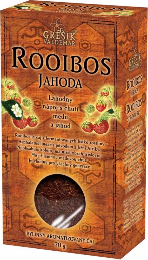 Rooibos je čaj z fermentovaných lístků rostliny Asphalatus linearis původem z Jižní Afriky. Neobsahuje kofein, má nižší obsah tříslovin. Má příjemnou medovou chuť. Je vhodný pro všechny generace.