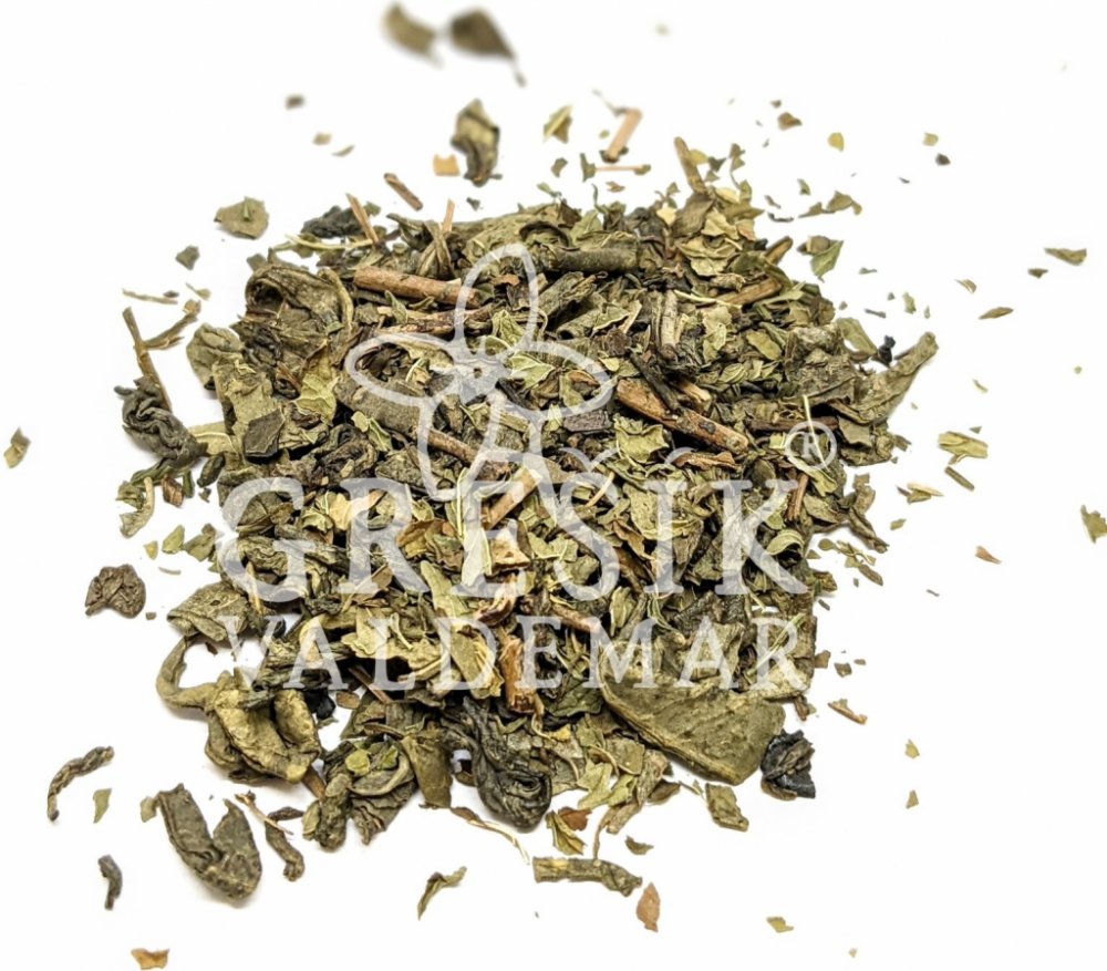 Zelený čaj s marockou mátou, velice osvěžující, zejména v horku. Složení: pravý zelený čaj, marocká máta 20 %Příprava: Jedna čajová lžička čaje se přelije 200 ml horké (ne vroucí) vody, nechá se 3 minuty odstát a pak se scedí. Fotografie je pouze ilustrační, skutečný vzhled se může mírně lišit podle konkrétní šarže. Zelený čaj s marockou mátou, velice osvěžující, zejména v horku. Složení: pravý ze...