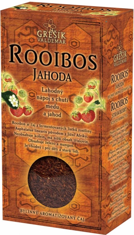Rooibos je čaj z fermentovaných lístků rostliny Asphalatus linearis původem z Jižní Afriky. Neobsahuje kofein, má nižší obsah tříslovin. Má příjemnou medovou chuť. Je vhodný pro všechny generace.