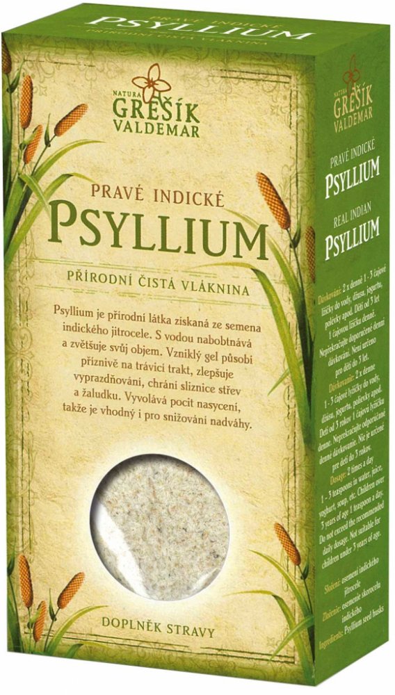 Psyllium je přírodní látka získaná ze semena indického jitrocele. S vodou nabobtnává a zvětšuje svůj objem. Vzniklý gel působí příznivě na střevní trakt.
