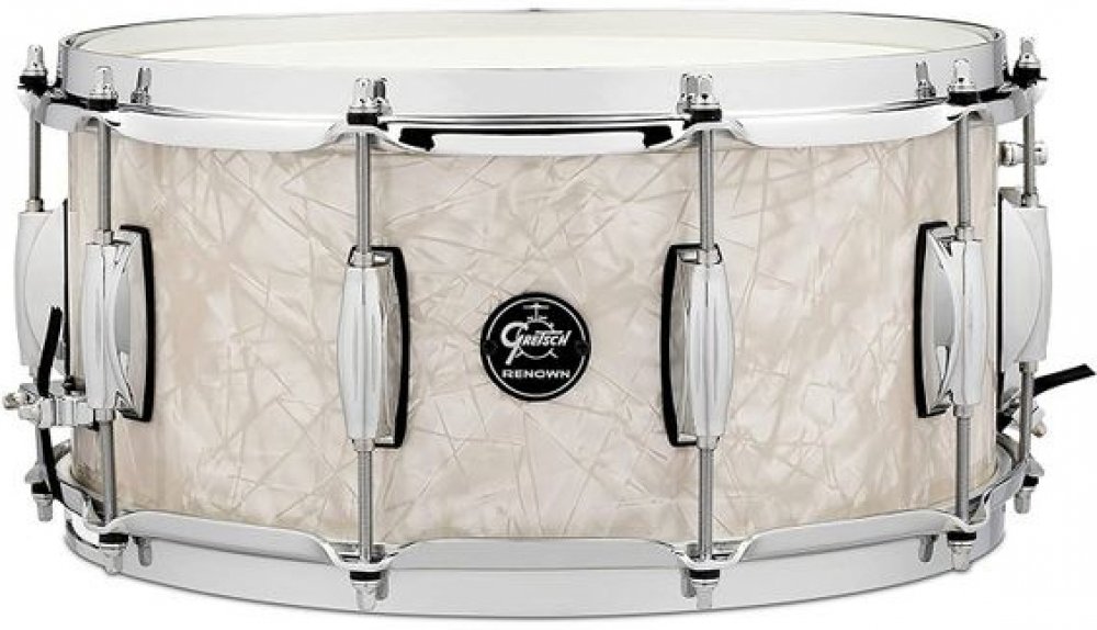 Snare drum Gretsch Renown, Vintage Pearl, 14" × 6,5" Snare bubínek Gretsch z řady Renown Maple. Tato tradiční a oblíbená řada byla redesignována v roce 2016. Korpus bubínku je vyroben ze 7 vrstev javoru. Vnitřek korpusu je chráněn stříbrným nátěrem (Gretsch Silver Sealer), který pomáhá vytvářet jasnější, sušší zvuk, který zní moderněji než zněly starší snare z této řady. Hrany korpusu jsou zešikme...