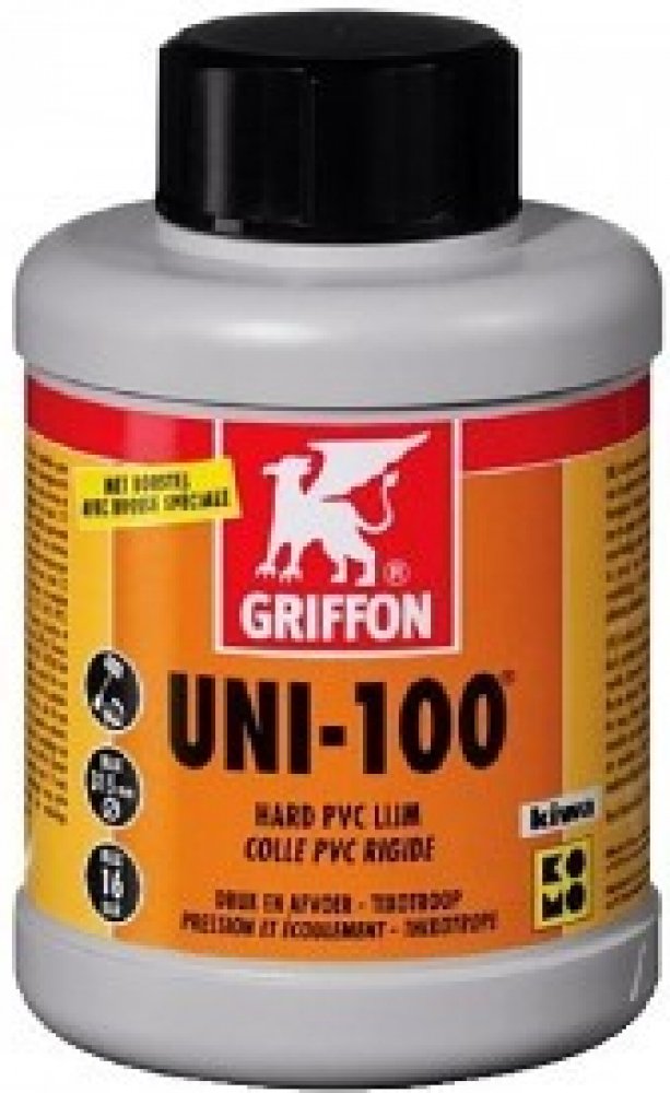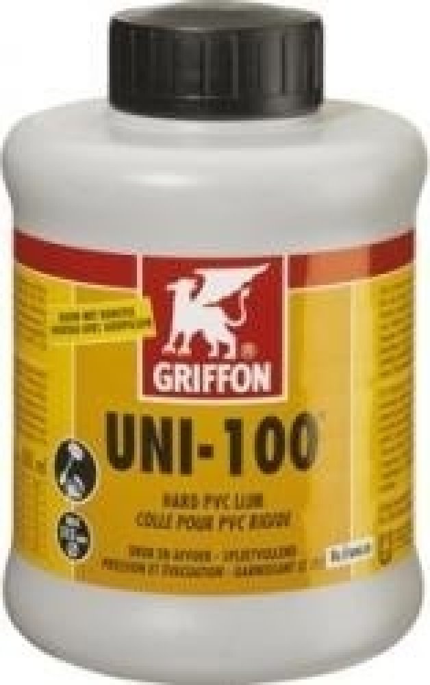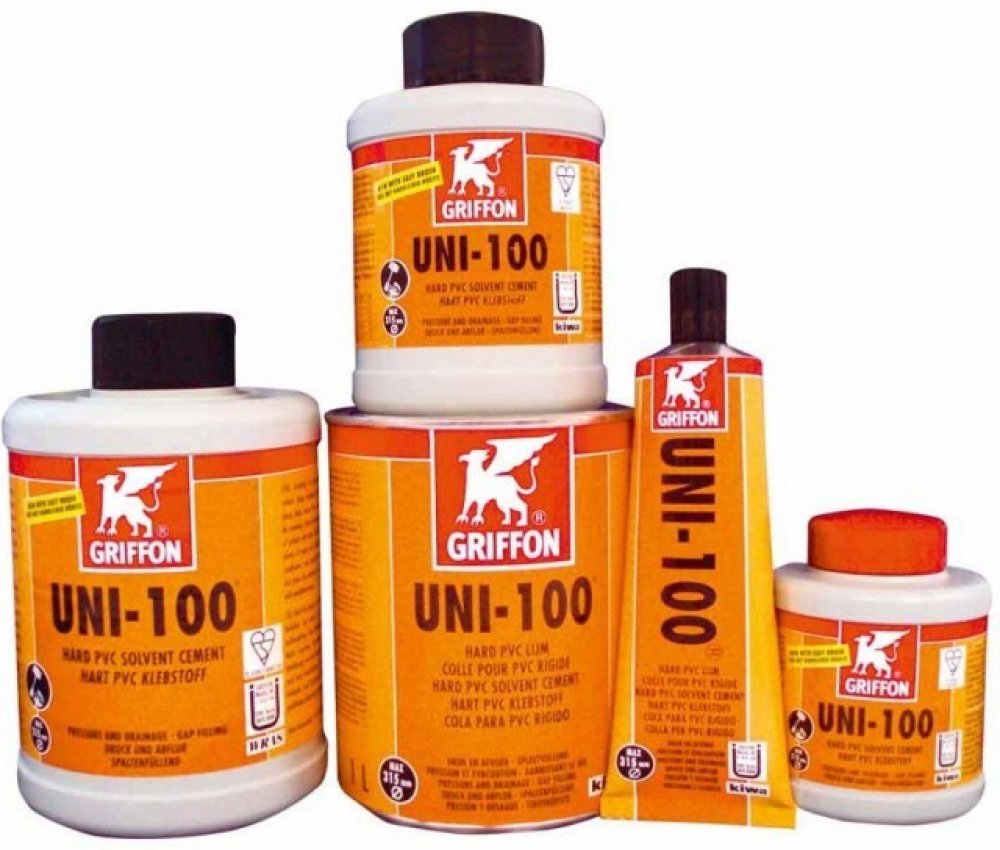Lepidlo Griffon před použitím dobře potřepejte. Na obě očištěné a suché plochy štětcem naneste v podélném směru souvislou a rovnoměrnou vrstvu lepidla (u hrdla tenčí a u konce trubky hrubší). Trubky a fitink zasuňte až na doraz tak, abyste nepootočili lepené díly a několik vteřin podržte. Lepené díly musí být zasunuté do 4 minut od začátku nanášení lepidla. Teplota nad +25°C nebo tenčí vrstva lepidla způsobuje zkrácení otevřené doby zpracování. Skladujte lepidlo v teplotách Od 5°C do 25°C.