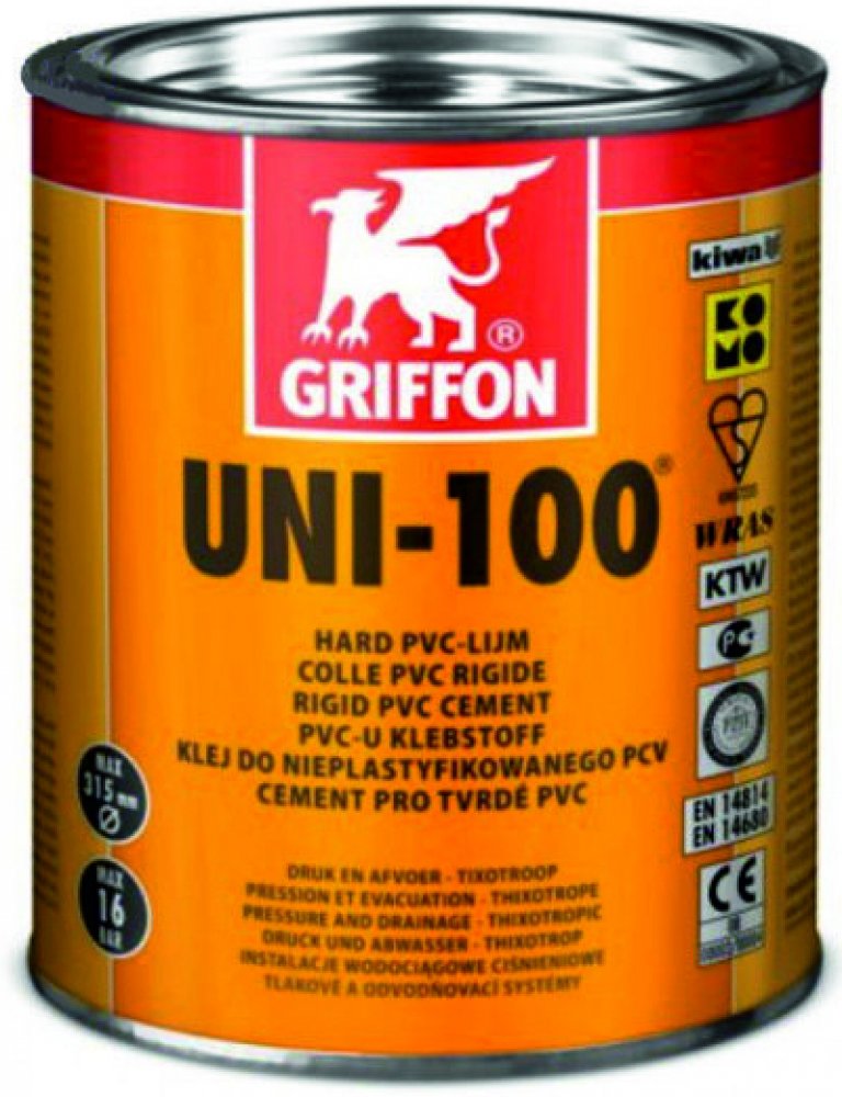 Lepidlo Griffon před použitím dobře potřepejte. Na obě očištěné a suché plochy štětcem naneste v podélném směru souvislou a rovnoměrnou vrstvu lepidla (u hrdla tenčí a u konce trubky hrubší). Trubky a fitink zasuňte až na doraz tak, abyste nepootočili lepené díly a několik vteřin podržte. Lepené díly musí být zasunuté do 4 minut od začátku nanášení lepidla. Teplota nad +25°C nebo tenčí vrstva lepidla způsobuje zkrácení otevřené doby zpracování. Skladujte lepidlo v teplotách Od 5°C do 25°C.