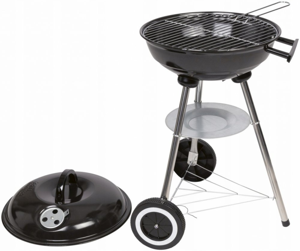 Grillmeister Gril na dřevěné uhlí Mini Kansas, 1200 cm 2 Optimální regulace teploty díky 4 větracím zarážkám; výškově nastavitelné vaničce na dřevěné uhlí Ideální na nepřímé grilování díky 2 chromovaným grilovacím roštům a chromovanému roštu pro udržení tepla Pozinkovaná mísa na dřevěné uhlí s klikou pro plynulé nastavení výšky Víko s práškovou vrstvou a integrovaným teploměrem Držadla z nerezové oceli Vyjímatelný popelník Praktická boční odkládací plocha Plastová kolečka vhodná do zahrady a velké držadlo vozíku 2 stabilní nohy se širokými opěrnými patkami Max. kapacita dřevěného uhlí: 0,6 kg Obsah balení Včetně upevňovacího materiálu a návodu k použití Materiál Ocel Q195 U11952, PP, nerezová ocel 430R, 304 Rozměry Pracovní výška: 74 cm cca 73 x 95 x 45 cm Š x V x H Rozměry grilovací plochy: cca 40 x 30 cm Š x H Rozměry plochy pro udržení tepla: cca 35,5 x 15,5 cm Š x H Hmotnost cca 14,5 kg