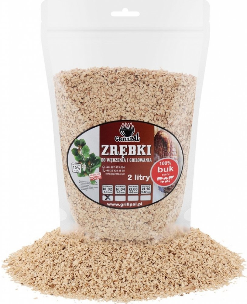 Buk je univerzální dřevo pro uzení masa a ryb. Poskytuje produktům jasnou zlatou barvu. Buková štěpka je ideální pro bezproblémové uzení i pro začátečníky. Vlastnosti udící štěpky: frakce 10, tj. frakce o rozměrech cca 9-12 mm, čisté a dobře odprášené, důkladně roztříděné, bez plísní a hub, výhodné balení obsahuje 2 litry štěpky, což by mělo vystačit na cca 6-8 hodin uzení.
