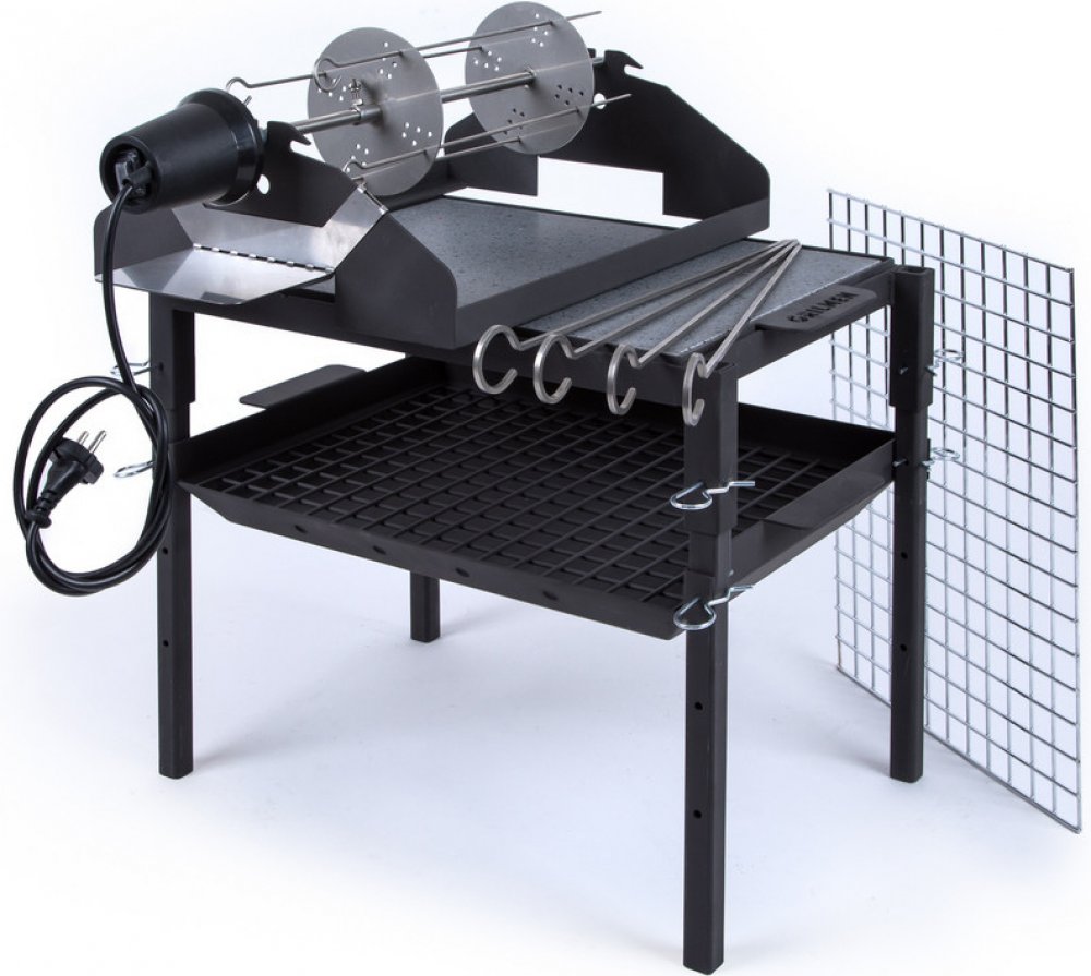 Gril na kuře je otočný rožeň s motorkem. Kromě kuřete na něm zvládnete ugrilovat také gyros nebo menší kýtu. Motorek unese cca 10-15 kg zátěž při optimálním vyvážení.