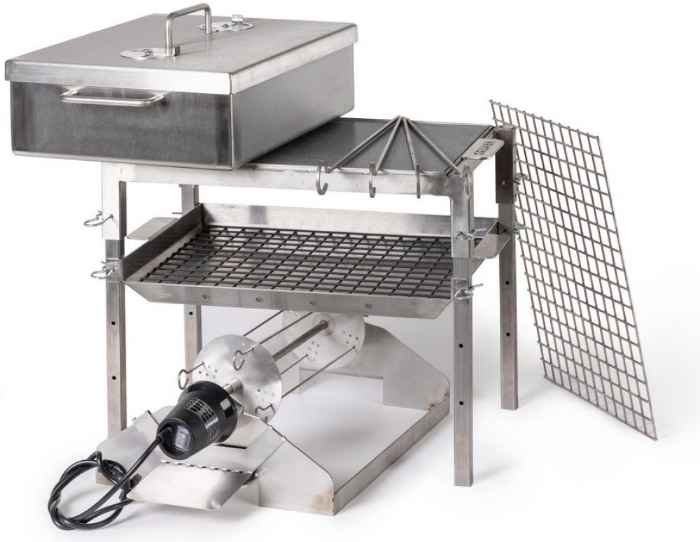 Gril na kuře je otočný rožeň s motorkem. Kromě dozlatova pečeného kuřátka na něm zvládnete ugrilovat také šťavnatý gyros. Motorek unese zátěž až 10-15 kg při optimálním vyvážení.