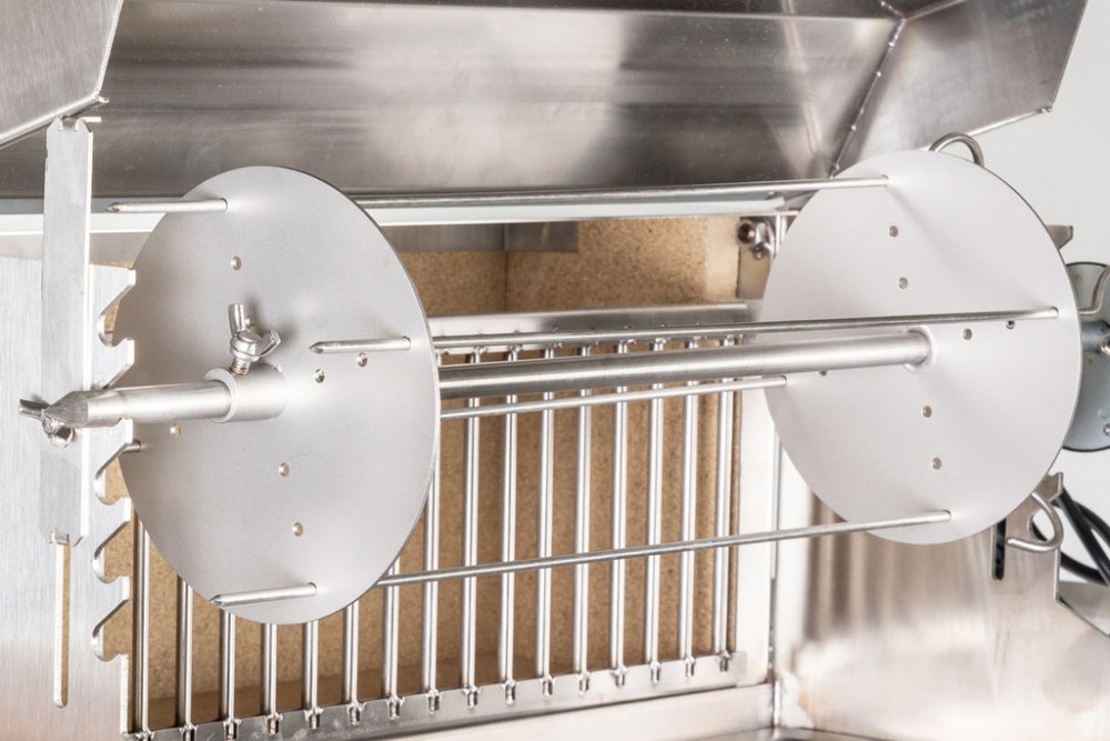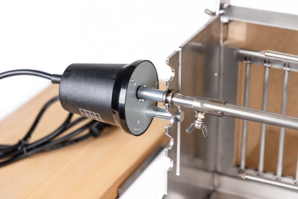 Rožeň je vybaven dvěma dvou-bodci, které využijete při napíchnutí menší kýty nebo jednoho kuřete nebo jiné pečeně v jednom kuse. Pro napíchnutí dvou kuřat vložíte doprostřed rožně čtyř-bodec. Jako třešničku na dortu si můžete na grilu opéci dozlatova šťavnatý gyros. Pro přípravu gyrosu dodáváme k otočnému grilu speciální sadu na grilování gyrosu, sestávající ze dvou fixačních kotoučů s křídlatými šrouby a čtyř pomocných jehel pro lepší upevnění grilovaného masa k rožni.