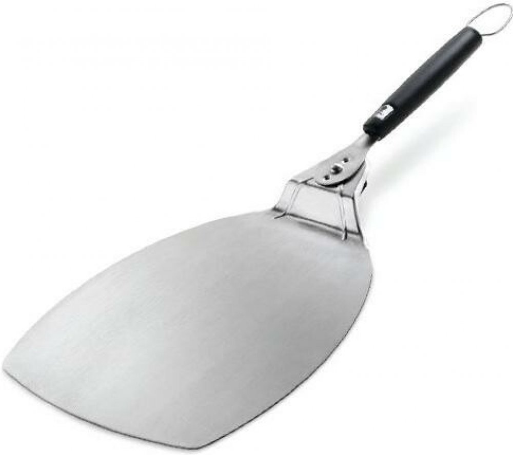 Sklapovací lopatka značky Weber na pizzu, praktické madlo a hlavně nezbytný doplněk, pokud máte rádi pizzu rovnou z vašeho grilu. Tato lopatka je vyrobena z nerezové oceli. Je vybavena sklopnou rukojetí, takže jí můžete po umytí skladovat položenou na malé ploše tam, kde vám nezabere cenné místo.