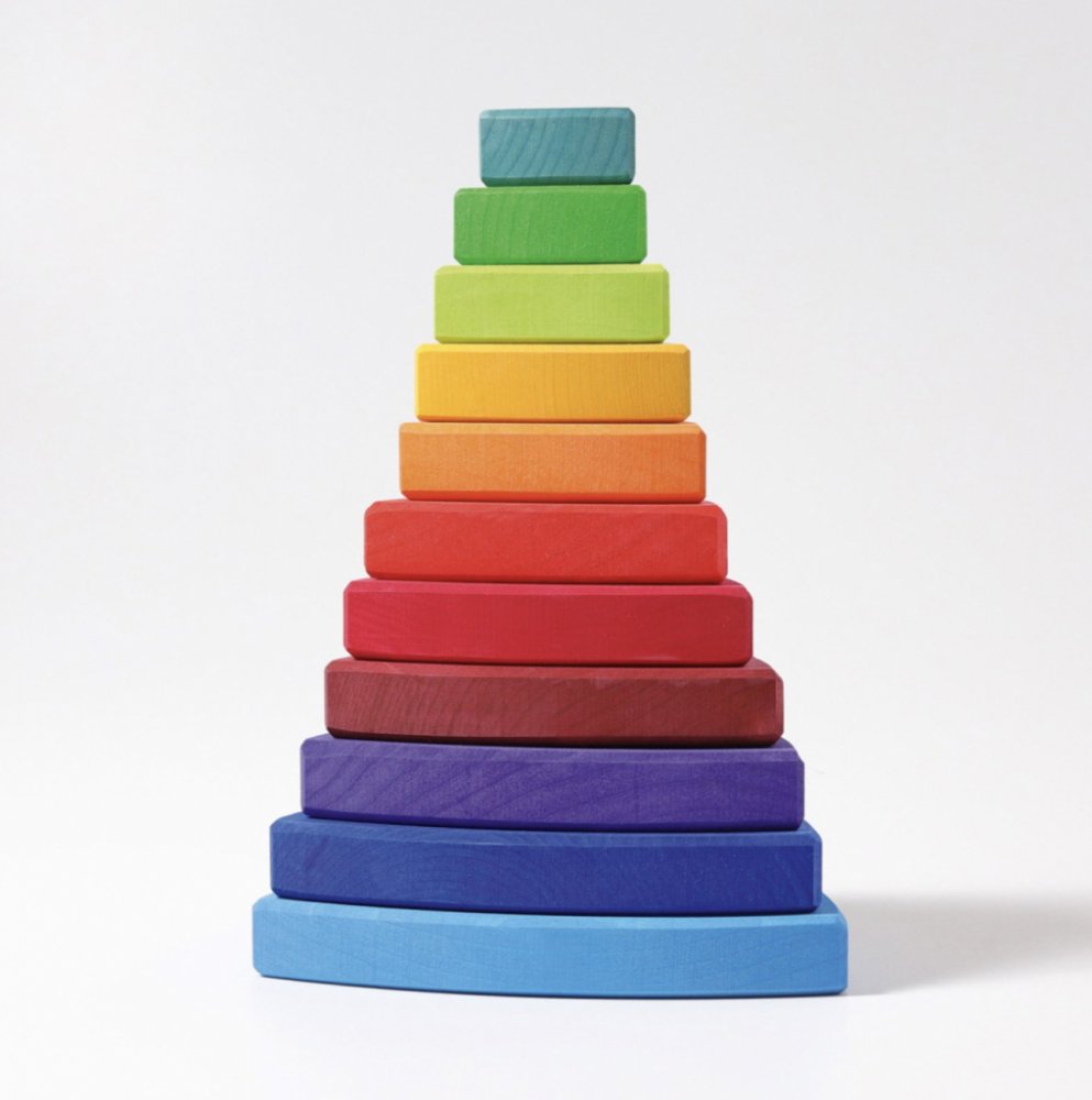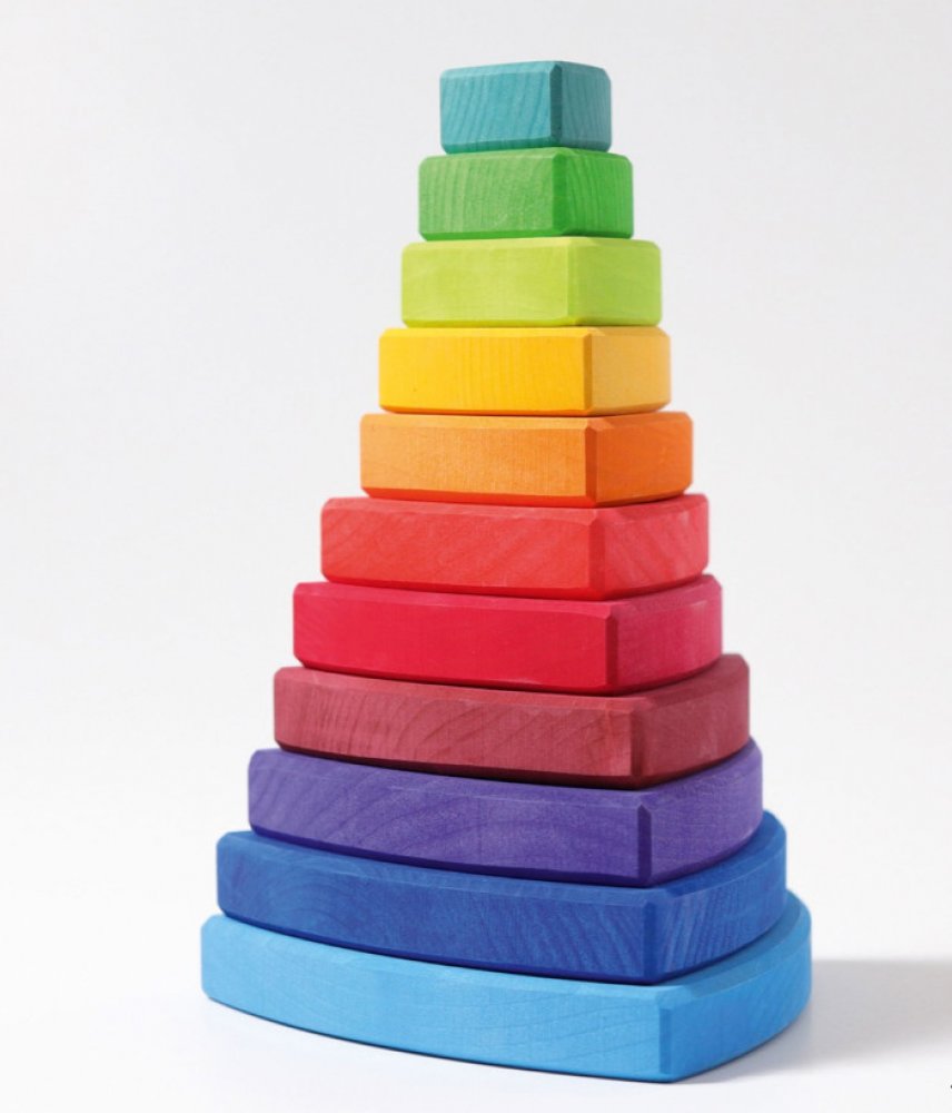 Hledáte hračku pro děti okolo jednoho roku? Nasouvací věže a různé pyramidy jsou tou správnou a vhodnou hračkou pro tento věk. Malé děti objevují nové, skládají, třídí, nasouvají, přeskládávají, řadí jednotlivé dílky – to je jejich nejoblíbenější činnost. A když hračka nabízí dítěti široké možnosti využití, bude je doprovázet dlouhou dobu. Hračky Grimm's jsou úžasně barevné, děti se brzy naučí barvičky pojmenovat. Dále se učí rozlišovat věci malé a velké, světlé a tmavé. Jednotlivé dílky těchto hraček jsou dostatečně silné, aby je děti mohly využívat i jako stavební kostky. Nastrkovací čili nasouvací věže rozvíjí jemnou motoriku dětí a senzomotoriku. Dalšími vhodnými hračkami v tomto věku jsou nasouvací krabičky, ale i skládačky duha a 4 živly a tahací zvířátka. Hračky Grimm's jsou vyrobeny z evropských dřevin, jsou ošetřeny ekologickými barvami a olejem a voskem, takže příjemně voní po přírodě. Dřevěné hračky Grimm's navíc vynikají svoji neobyčejně krásnou, ladivou a zářivou barevností.