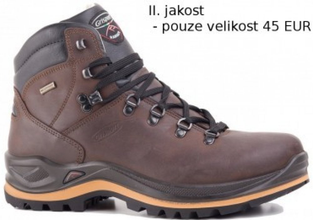 '.II. jakost - odstín hnědé je na každé botě mírně odlišný. Pouze velikost 45. Plně funkční. Na produkt je poskytována standardní záruka 2 roky.Podařený kotníkový model z řady Ranger. Technologie byla vyvinuta důkladným výzkumem a bezpočtem testů. Obuv zajišťuje maximální stabilitu i na nepředvídatelném terénu a přitom je velmi komfortní. Bota má minimum švů, což je velmi žádané u pevné kotníkové trekovky. O ochranu proti vlhkosti se stará membrána Spo-Tex, která je použita ve zdokonalené formě "bootie", tzn. ponožky se svařenými spoji. Nová podešev Vibram Ranger má výborné protiskluzné vlastnosti a samočistící dezén. Mezipodešev z PU výborně absorbuje nárazy při chůzi a tím zvyšuje celkový komfort. Zdokonalený Support systém zajišťuje lepší podporu kotníku a fixaci chodidla v botě. Lze použít i pro treky v náročnějších terénech s batohem na zádech.- vysoký profil- voděodolná konstrukce obuvi Waterprrof Bootie- klasické šněrování s plochými tkaničkami, kovovými očky a háčky- podešev Vibram Ranger s vysokým mnohasměrným a samočistícím dezénem a protiskluzovými vlastnostmi, odolná proti oděru a sešlapu- všitý a polstrovaný jazyk zabraňující vniku vody a nečistot- kožený vnitřní vrchní lem boty- ochrana paty a špičky proti okopu- vyjímatelné stélkaMateriál: svršek - lícová hovězina DAKAR s vodoodpudivou úpravoupodešev - Vibram Rangermembrána - Spo-Tex - waterproof konstrukcemezipodešev - PUSupport system – inovovaná verzeHmotnost: 1250 g (pár ve velikosti 42)Vyrobeno v Itálii.Spo-Tex - Funkční membrána, která umožňuje nohám v botě "dýchat" a přitom je udržuje v suchu. Spo-tex garantuje nejvyšší komfort. Membrána na bázi bezporézního PE je konstruována obdobným způsobem jako Sympatex. Je umístěna mezi podšívku a svrchní materiál. Membrána je odolná vůči průniku vlhkosti do obuvi. Hodnota vodotěsnosti samotné membrány je 10000 mm vodního sloupce (Schmerber).Prodyšnost membrány je dána hodnotou propustnosti vodních par v minimální výši 2700 g/m2/24hod.Vibram Ranger - podešve od světoznámého italského producenta jsou všude na světě uznávány jako nejlepší podešve pro horolezectví a turistiku. Důležitými vlastnostmi podešví Vibram je jejich excelentní přílnavost na mokrých i suchých površích i výborná odolnost pryžového materiálu. Konstrukce podešví Vibram zaručuje jejich výbornou stabilitu, dostatečnou trakci, trvanlivost a protiskluzné vlastnosti. Support System - Efektivní systém pro zpevnění kotníku. Byl vyvinut pro perfektní kontrolu chodidla a zajišťuje excelentní stabilitu ve všech fázích pohybu. Dodává pocit bezpečí a pohodlí i při chůzi dolů terénem nebo na svažitých površích..'
