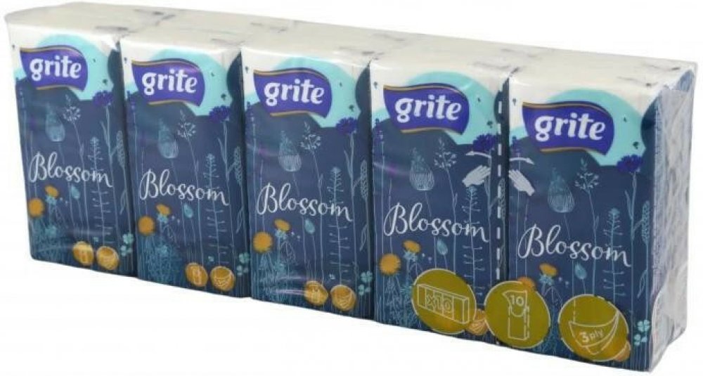 Papírové kapesníky 3-vrstvé ze 100 % celulózy, balení 10 balíčků po 10 kusů kapesníků.