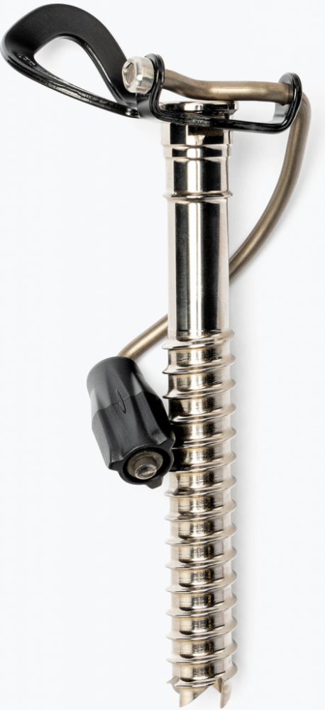 Šroub do ledu Grivel 360 s dlouhou rukojetí kličky, která vyžaduje méně energie při zavrtávání. Klička je sklopná pro lepší skladnost, ale šroub lze zavrtat i se sklopenou kličkou.