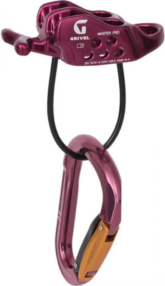 - jistící/slaňovací pomůcka Grivel MASTER PRO s odlehčeným tělem,V drážkami pro účinné tření a s možností dobírání druholezce shora