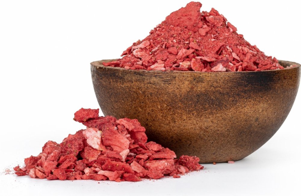 GRIZLY Jahody lyofilizované prach a zlomky 50 g Vlastnosti a výhody: Díky šetrnému sušení mrazem mají GRIZLY lyofilizované jahody zachované veškeré vitamíny a živiny jako jahody čerstvé. Jsou bohatým zdrojem vitamínu C, a díky nízkému glykemickému indexu a vysokému obsahu vlákniny je mohou jíst i diabetici. Tyto jsou rozdrcené na jemný prášek a malé kousíčky a v kuchyni je pro ně bohaté využití. L...