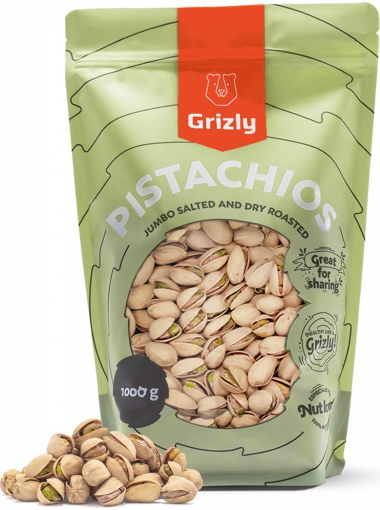 GRIZLY Pistácie pražené solené Jumbo 1000 g. Jemně solené pistácie si zamilujete na první ochutnání. Nabízíme vám odrůdu jménem Kalleh Ghouchi, která je známá také pod názvem Jumbo. Pochází z USA a jejím typickým znakem jsou větší jádra oblého tvaru. Loupání pistácií bývá někdy zábavná a odpočinková činnost, pokud se ovšem neřadíte mezi její fanoušky, máme pro vás řešení jménem loupané pistácie. D...