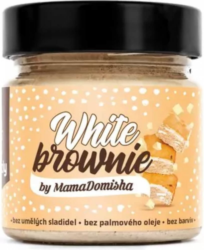 White Brownie je lahodný krém z kvalitní bílé čokolády a ve spojení s lískovými ořechy a ghí tvoří neodolatelnou máslovou chuť. White Brownie by @mamadomisha se stalo nejoblíbenějším produktem řady a my se těšíme až ho od nás ochutnáte!