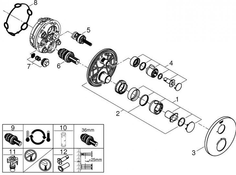 GROHE Zarážka SafeStop Plus volitelný omezovač teploty na 43°C nebo 46°C včetně