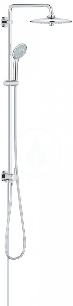Tento působivý sprchový systém s přepínačem vaší koupelně okamžitě dodá prémiový nádech a fantastický výkon. Systém je ideální pro rychlé renovace, jelikož je kompatibilní s vašimi stávajícími sprchovými ventily a jeho montáž nezabere mnoho času. Hlavová sprcha o průměru 260 mm disponuje třemi charakteristickými režimy proudu. Přitom vše, co potřebujete ke změně režimu proudu, je otočit inovativním kolečkem uprostřed sprchové hlavice. Technologie vnitřní WaterGuide dále sprchu chrání tím, že zajišťuje, aby povrch sprchy nebyl nikdy příliš horký k dotyku. Sprchový systém GROHE Euphoria 260 s přepínačem – všestranná sprchová dokonalost.