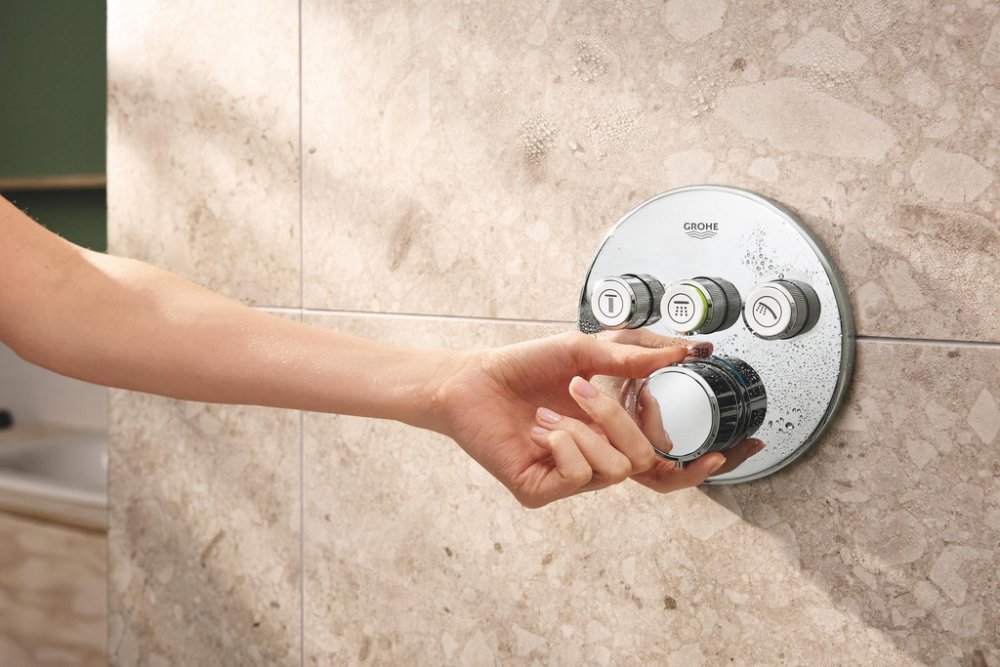 Ideální pro domácnost s dětmi. Tato bezpečnostní funkce je nastavena na teplotu 38 °C, aby nedošlo k nastavení teploty vody na příliš vysokou hodnotu. V případě potřeby lze nastavit stisknutím tlačítka i vyšší teploty. Volitelné příslušenství pro vyšší bezpečnost: omezovač průtoku GROHE SafeStop Plus se snadnou instalací, který zabraňuje nastavení teplot vyšších než 43 °C.