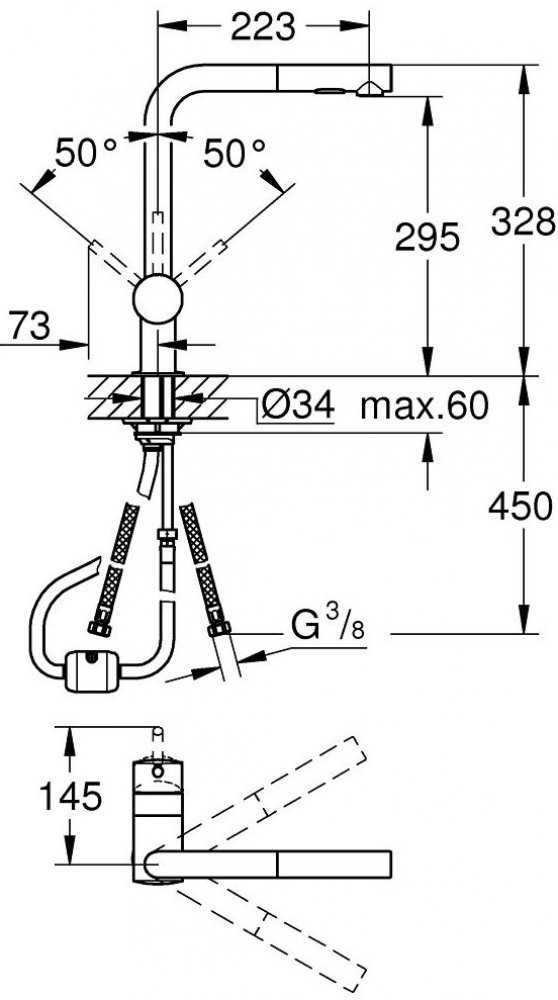vytahovací duální sprška - přepínání mezi normálním a sprchovým proudem